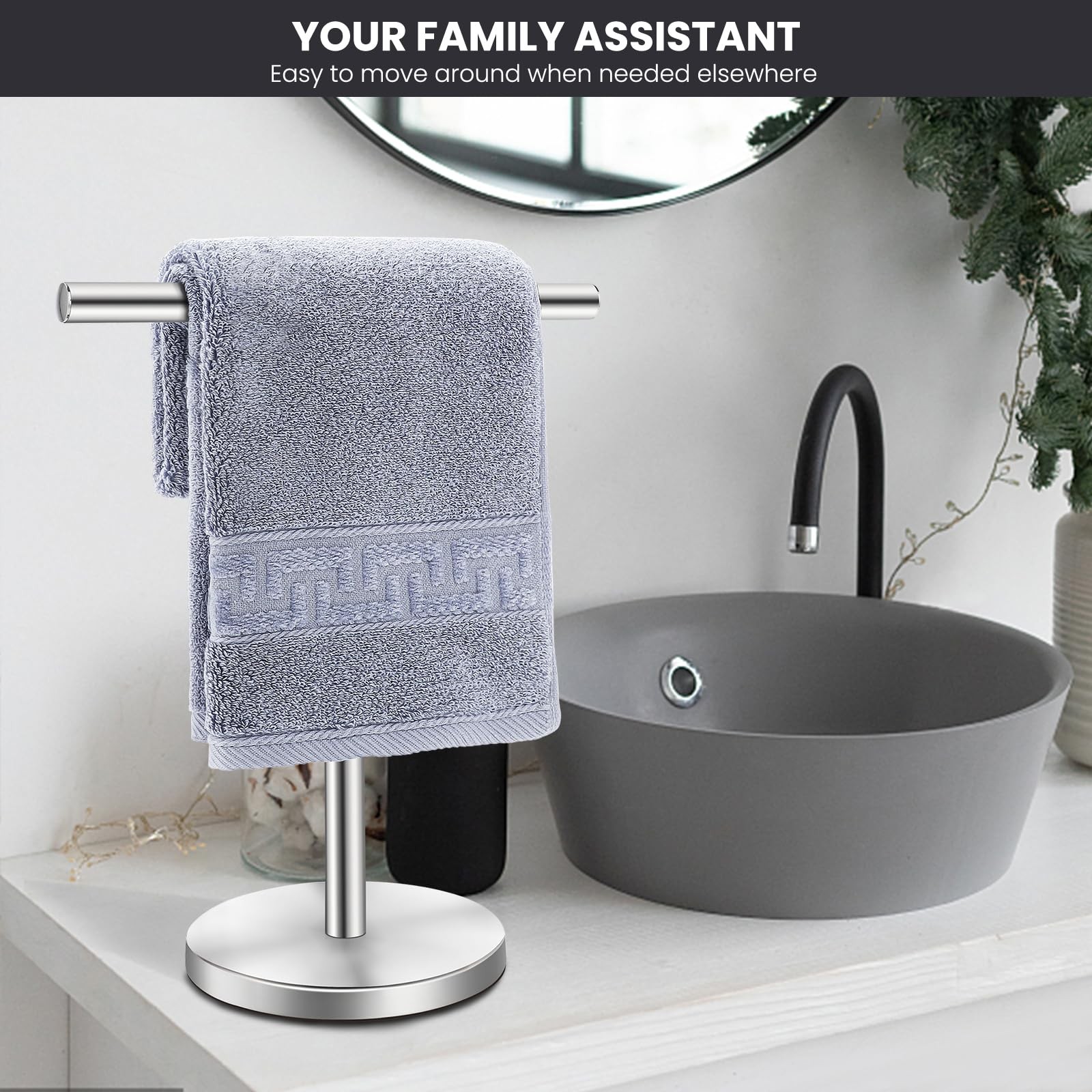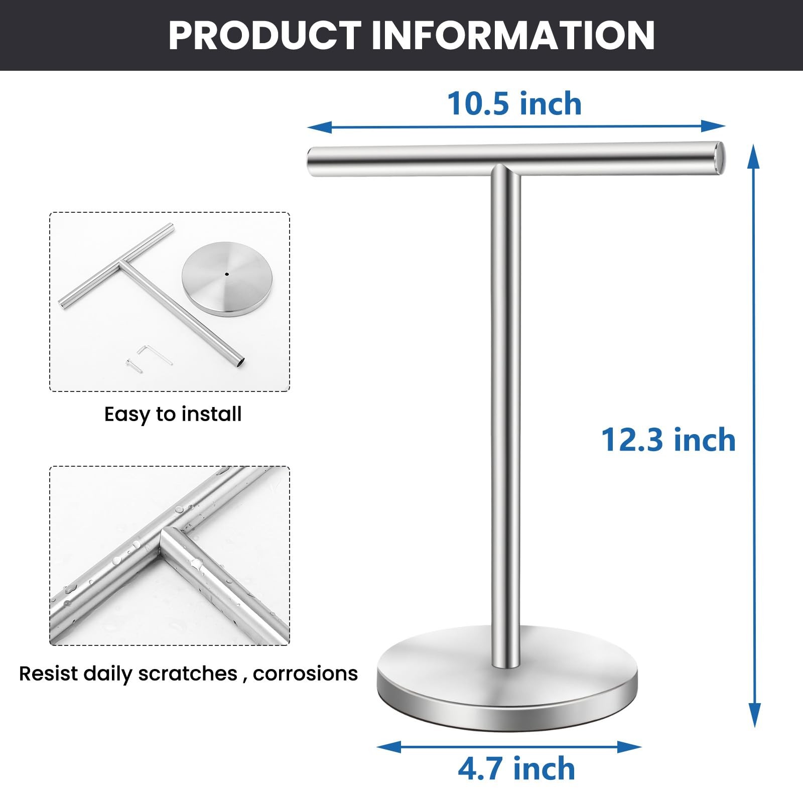 T-Shape Bath Hand Towel Holder Stand Stainless Steel Free Standing Hand Towel R