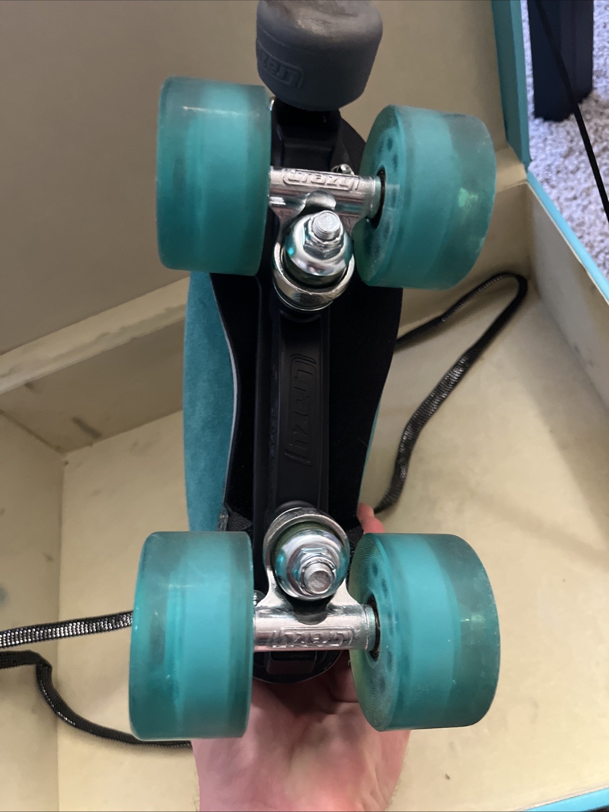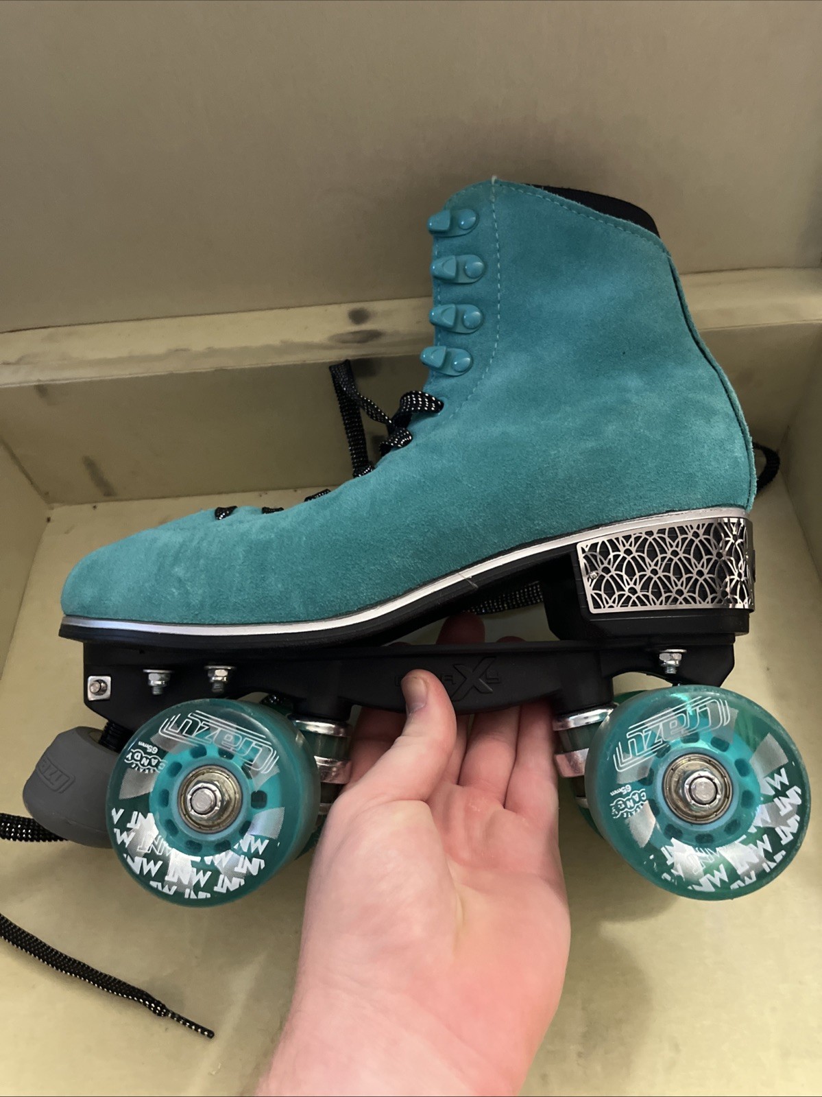 Suede Evoke Crazy Skates, Teal, Quad, US Women s Size 8.5- Men s 7.5 w/Case