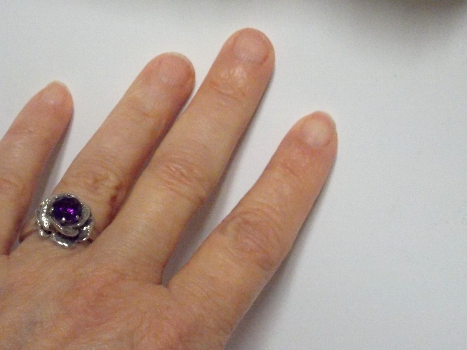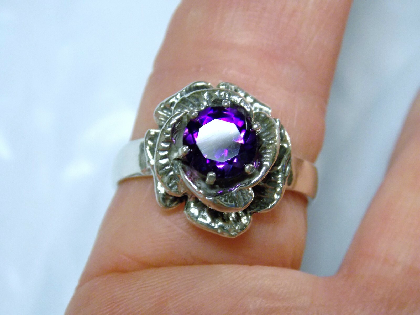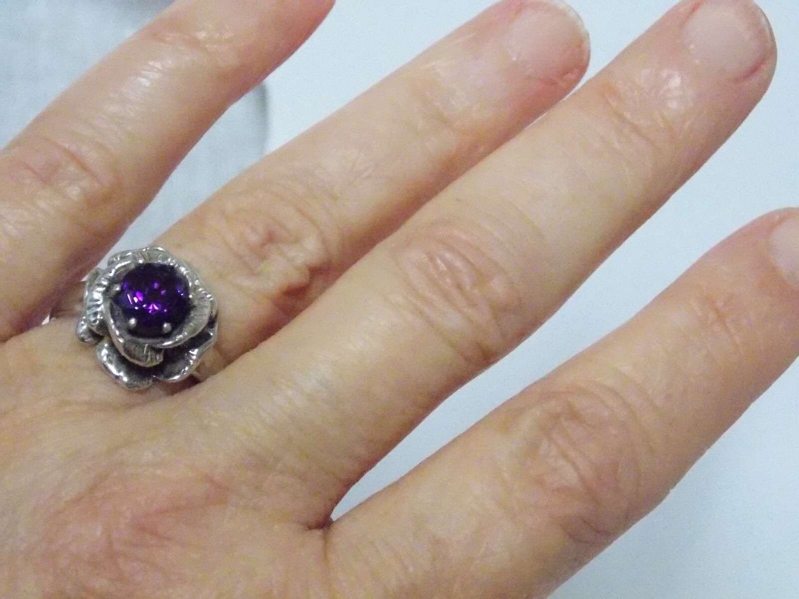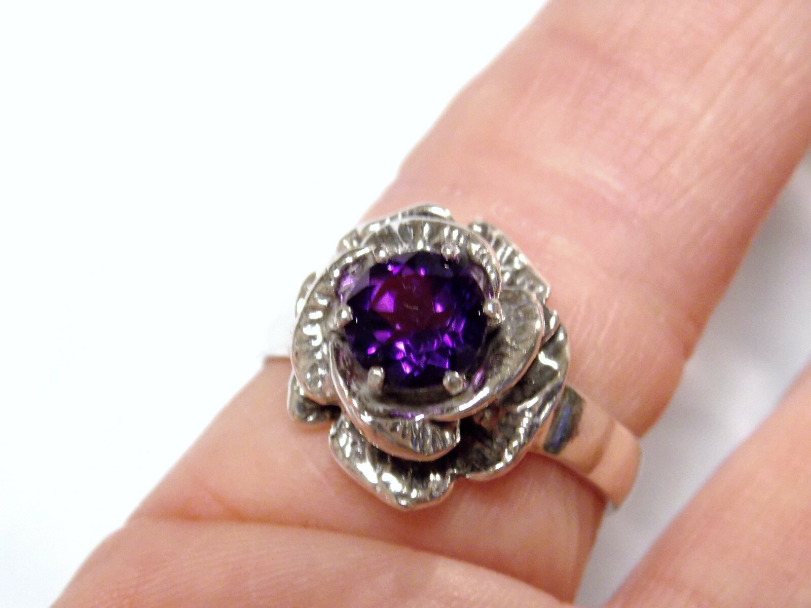 как выглядит Natural Purple Amethyst Size 5.5 Ring 925 Sterling Silver Vintage Style Flower фото