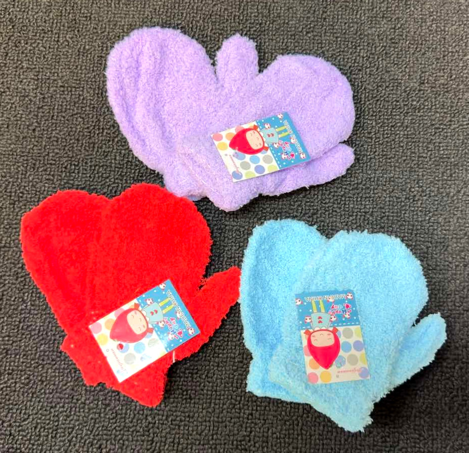 как выглядит 12 Pack Kids Fuzzy Mittens, Warm Soft Mitten Toddlers Children, Bulk Assorted фото