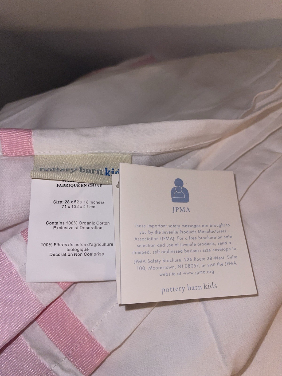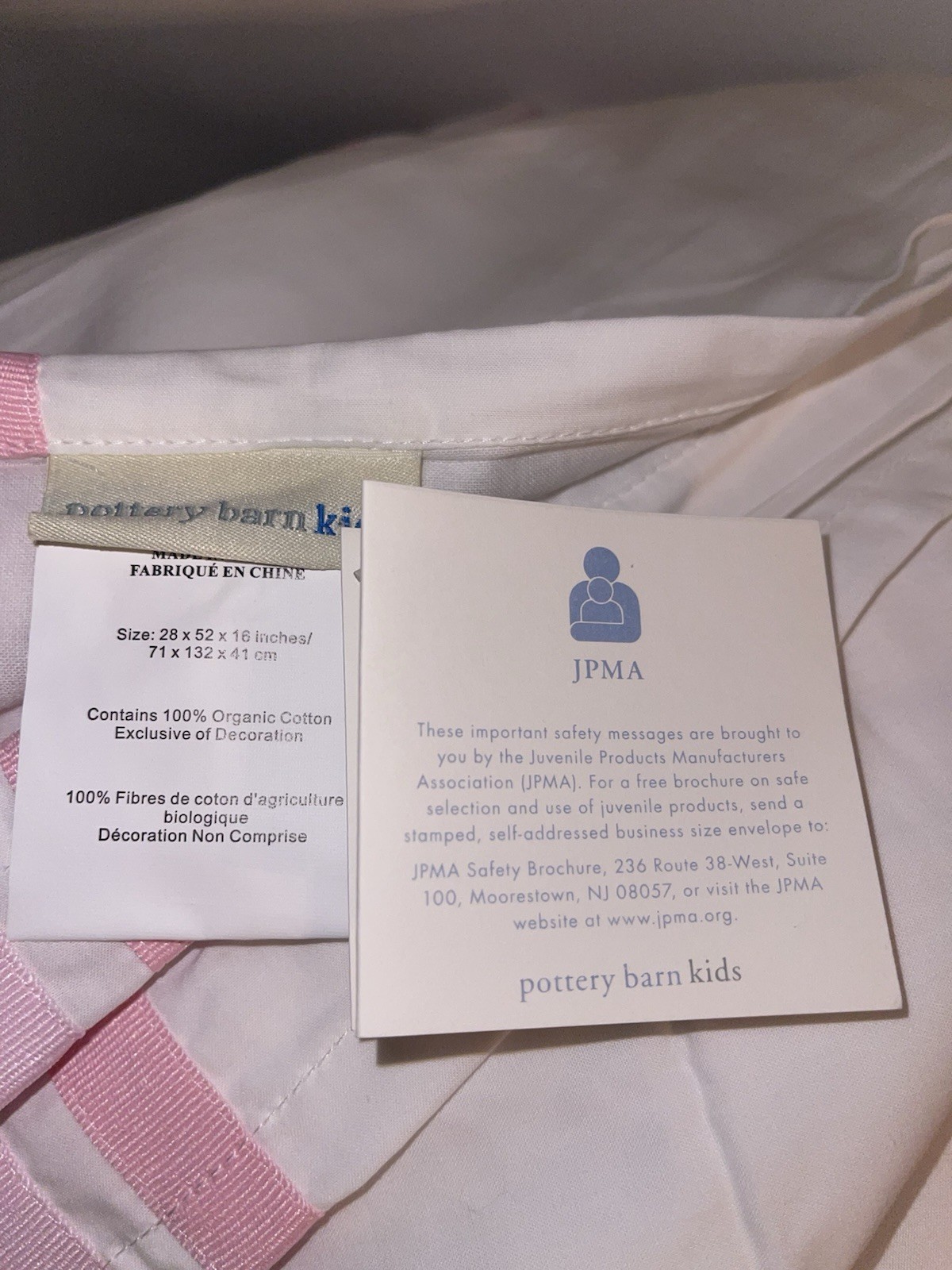 как выглядит NEW Pottery Barn Kids Pink Ribbon Nursery Crib Baby Bed Skirt фото