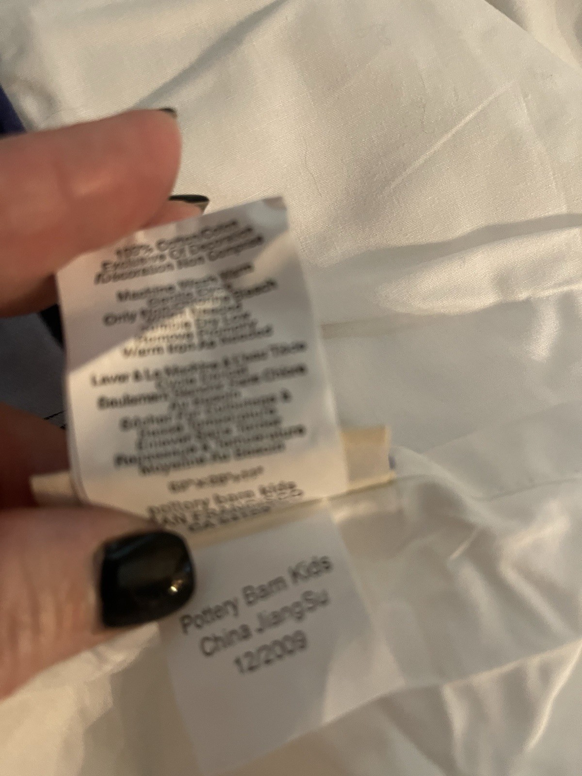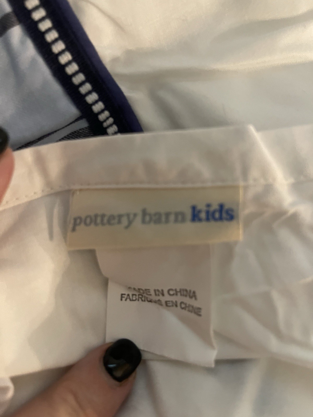 как выглядит Pottery Barn Kids Blue Striped Embroidered Nursery Crib Baby Bed Skirt фото