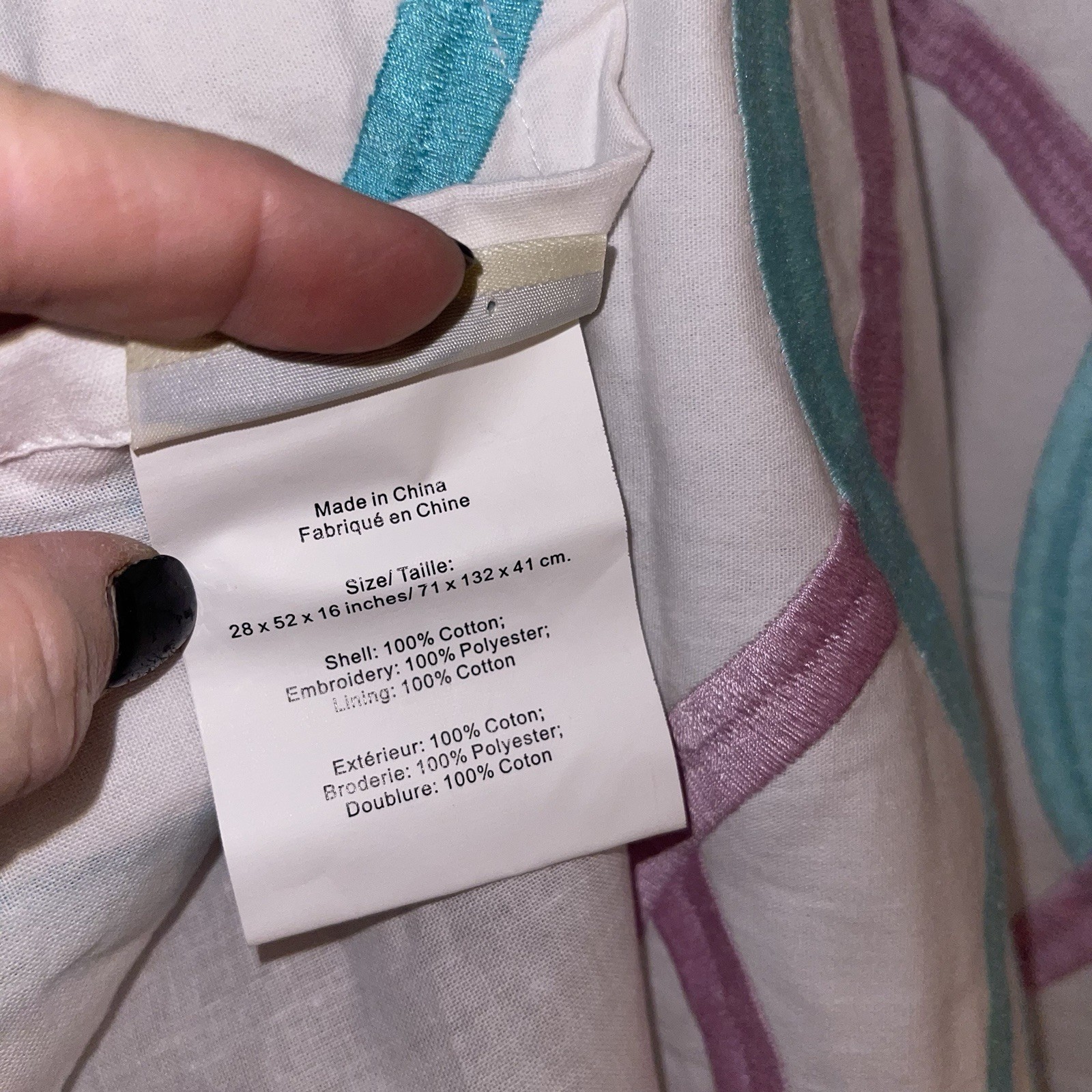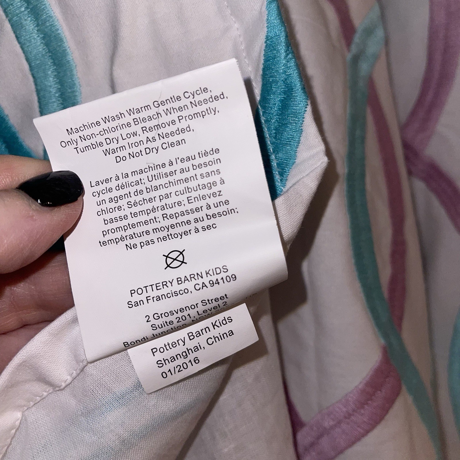 как выглядит Pottery Barn Kids Pink White Ribbon Nursery Crib Baby Bed Skirt фото