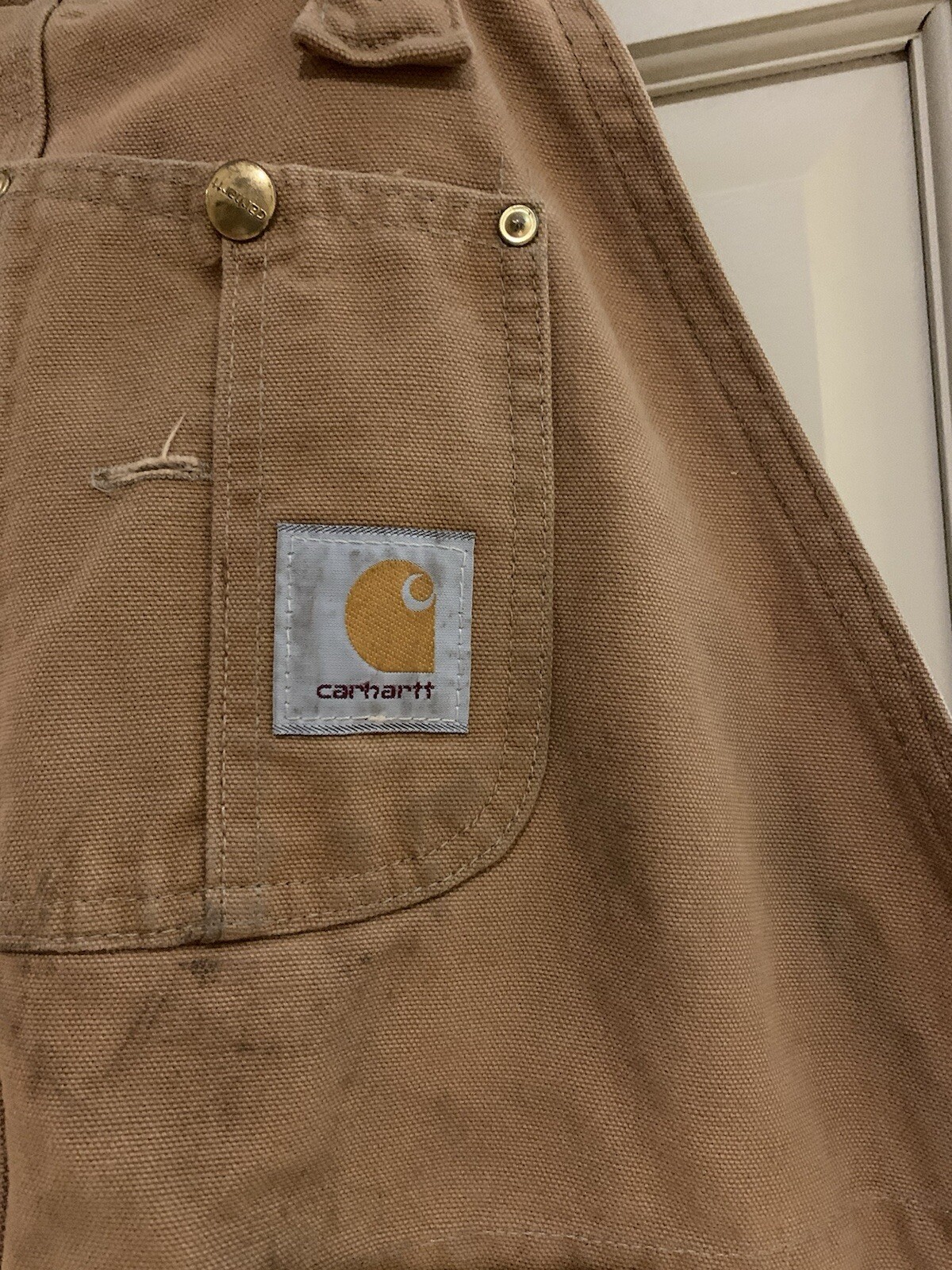 как выглядит Vintage Carhartt USA Men R02 BRN Double Knee Canvas Overall 42x32 Red Quilt Line фото