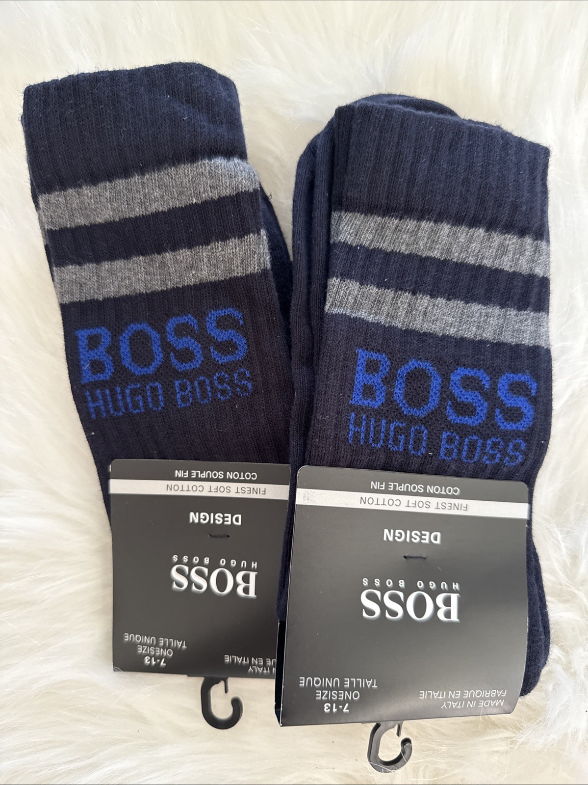 Hugo Boss NEW Dark Blue Rib Boss Logo 2 Pair Men s Socks