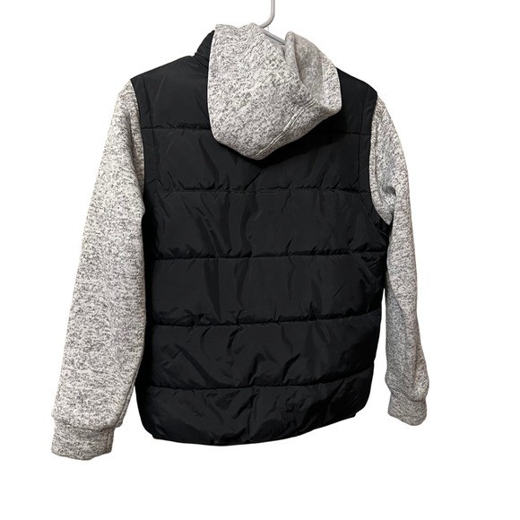 как выглядит Hurley Boys Youth Puffer Jacket Hooded Black Gray Full Zip Pockets Size Large фото