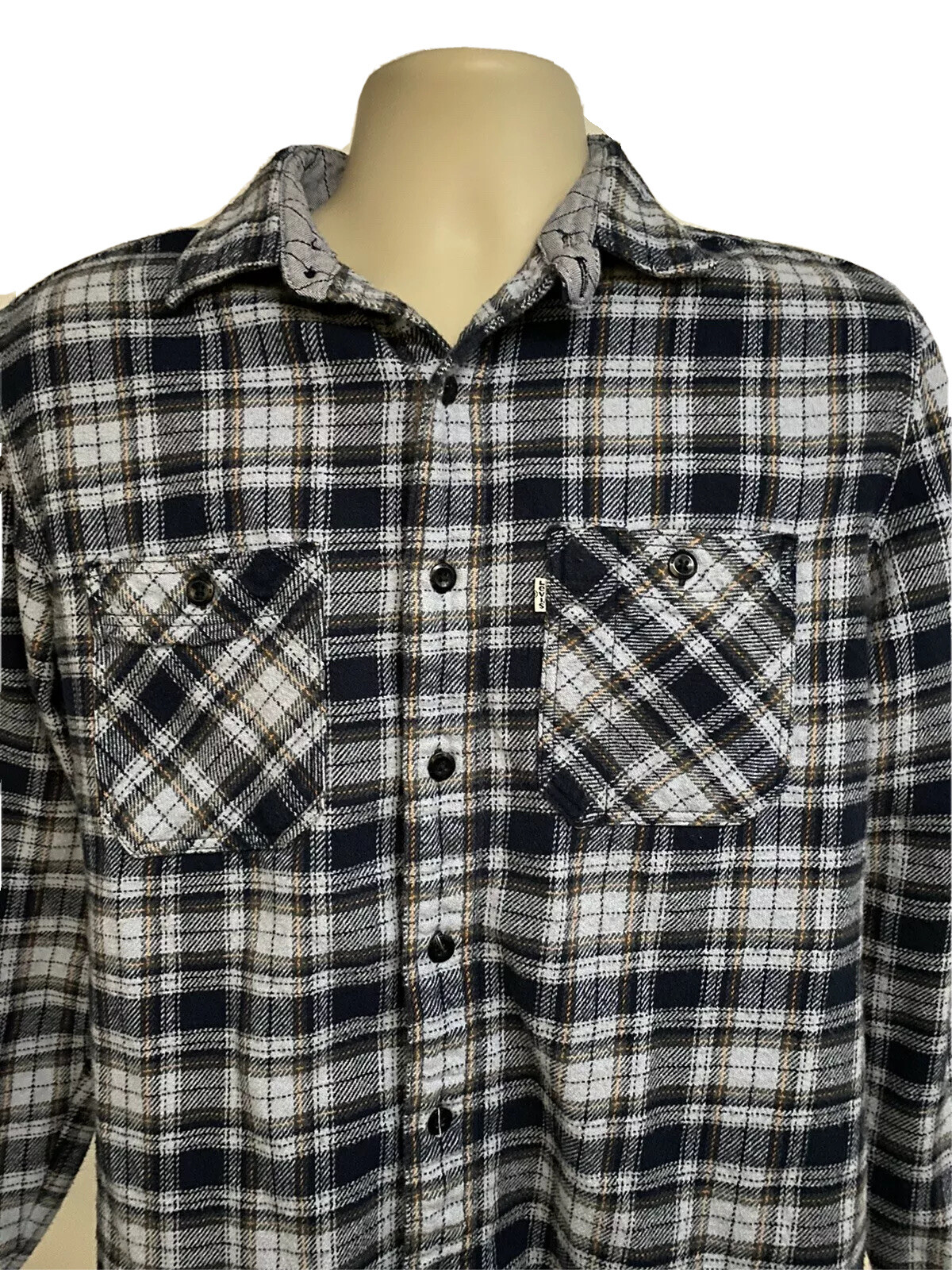 Levis Vintage Blue Plaid Flannel Button Up Shirt Medium Pockets Relaxed Cotton