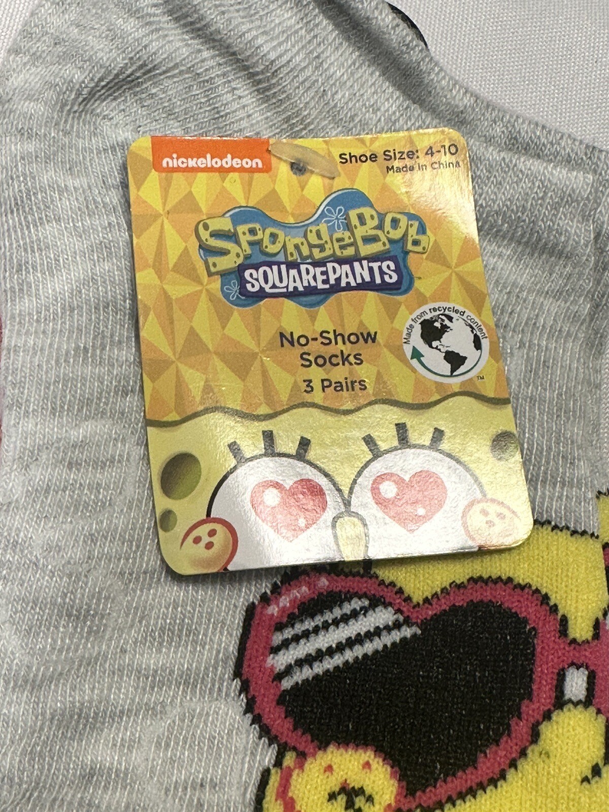 nickelodeon 3 pairs no show ankle socks spongebob size 4-10