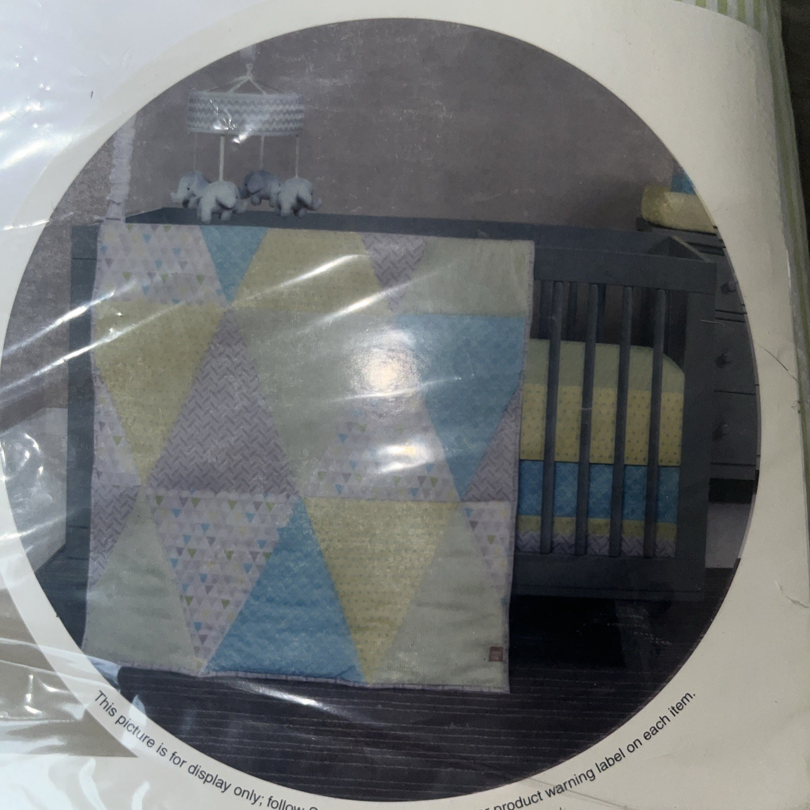 как выглядит Trend Lab Triangles 3 Piece Crib Bedding Set Quilt/Crib Skirt/Sheet Blue/Green фото