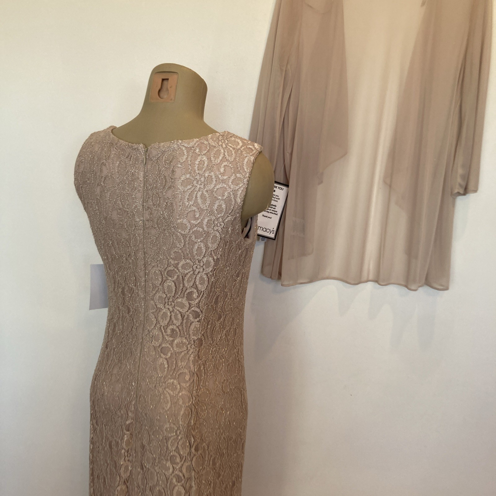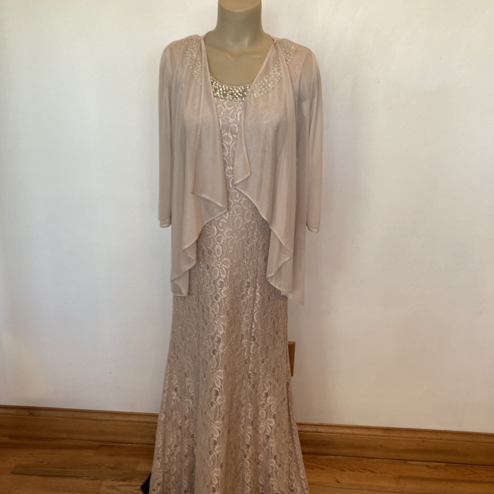 как выглядит New 159. R M Richards size 6 champagne long gown jacket mother of bride фото