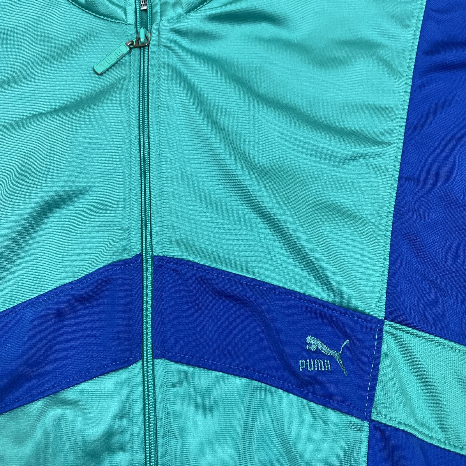 Vintage 1980s PUMA Track Jacket Blue Green Geometric Medium VTG Casual Sports