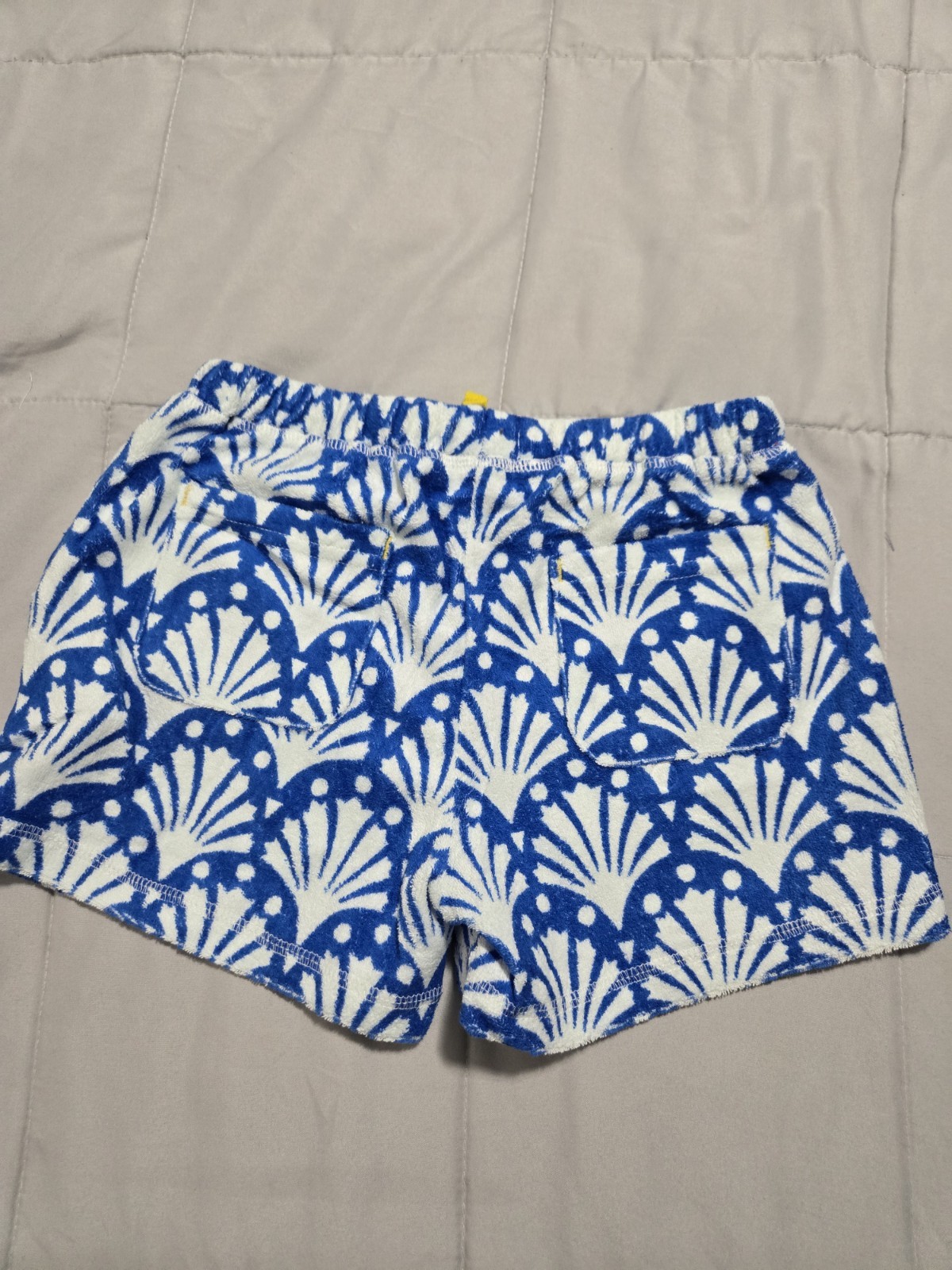 как выглядит New Mini Boden Girl Blue Geo Coral Scallop Shell Terry Shorts 9 Y Swim Pockets фото