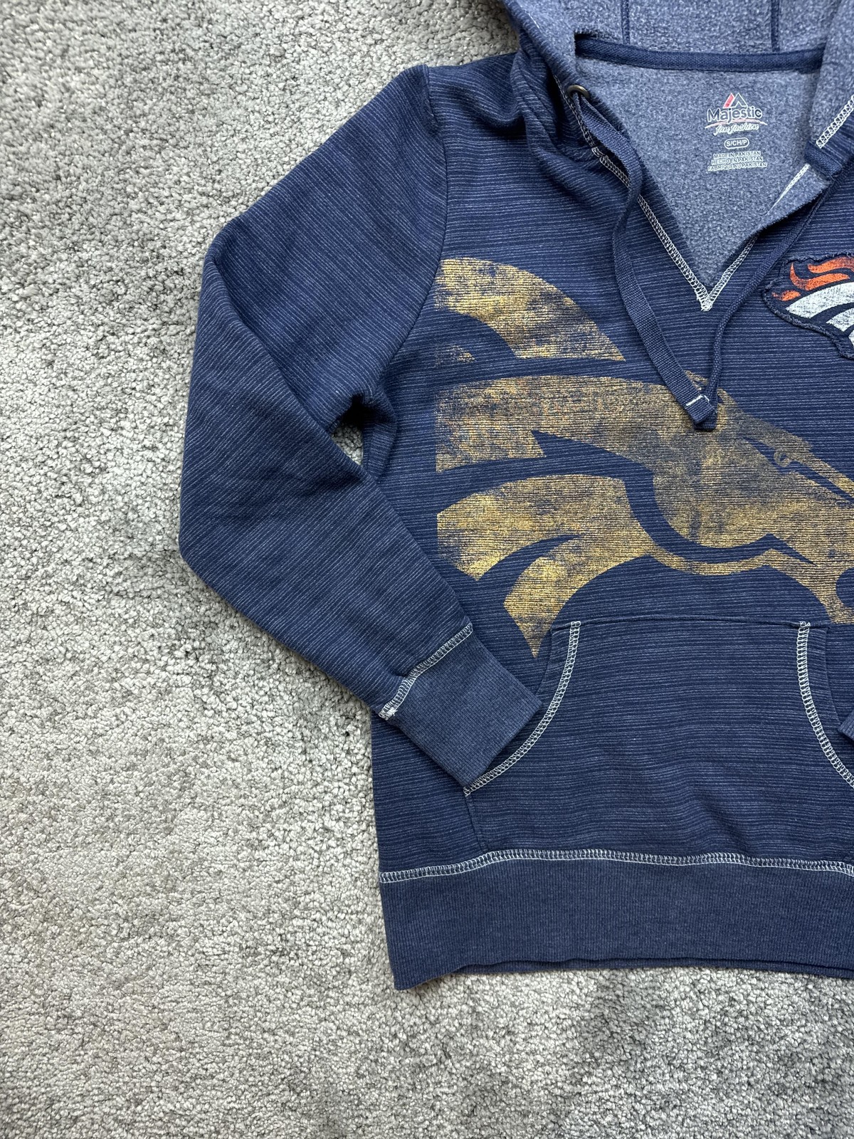 • Denver Broncos Hoodie Womens Small Blue NFL Football Majestic Pullover Fleece