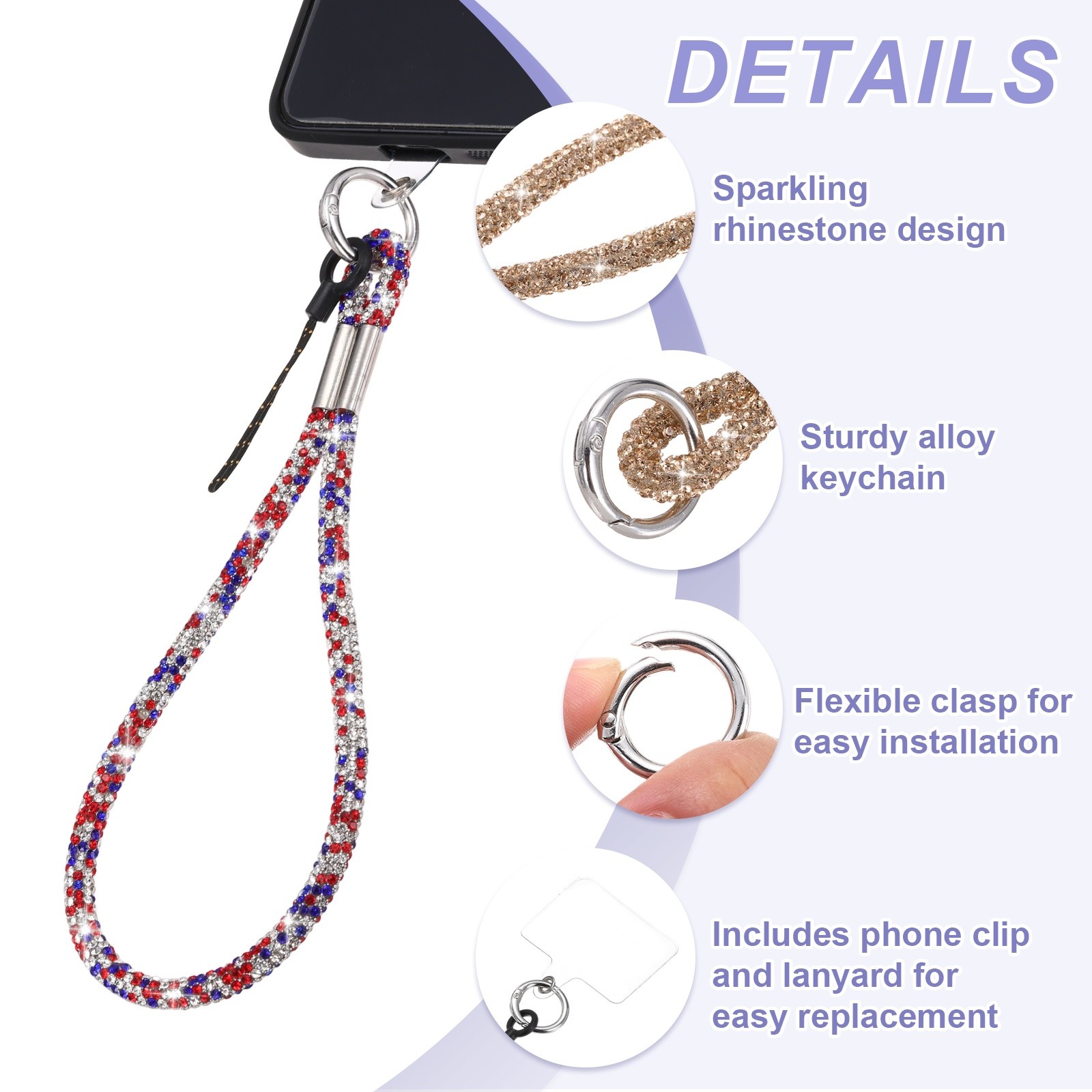 2Pcs Bling Wristlet Keychain, Full Rhinestone Phone Lanyard, Champagne