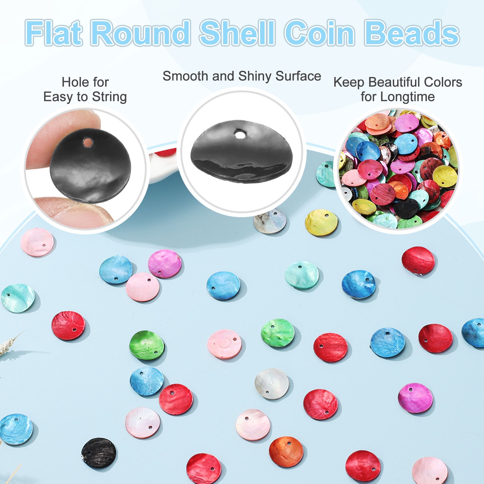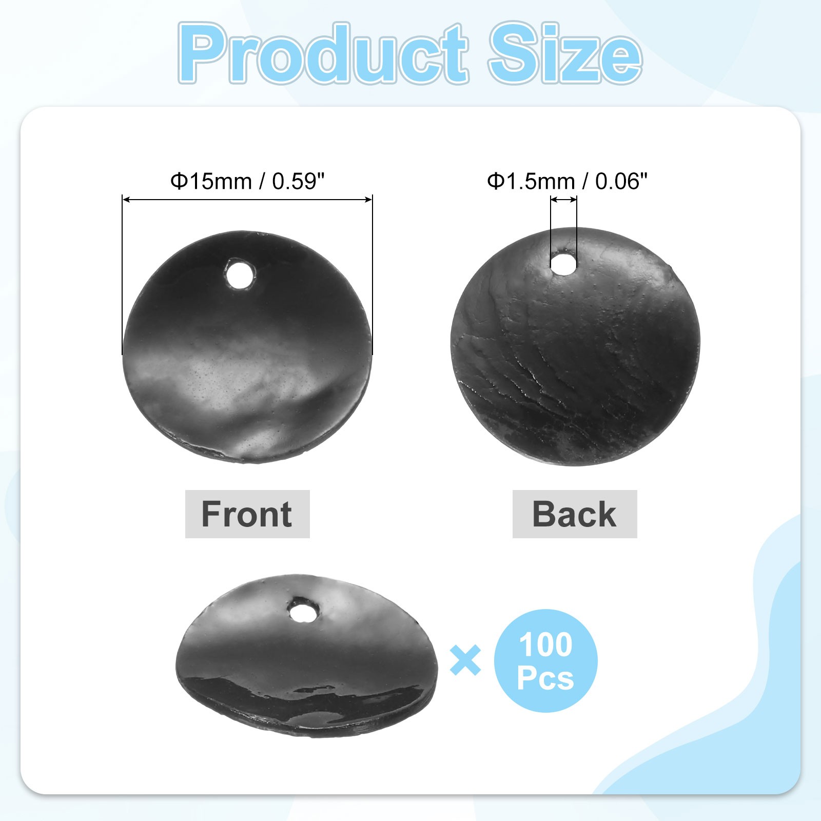 100Pcs 15mm Flat Round Shell Coin Beads, Shell Charm Beads with Hole, Black