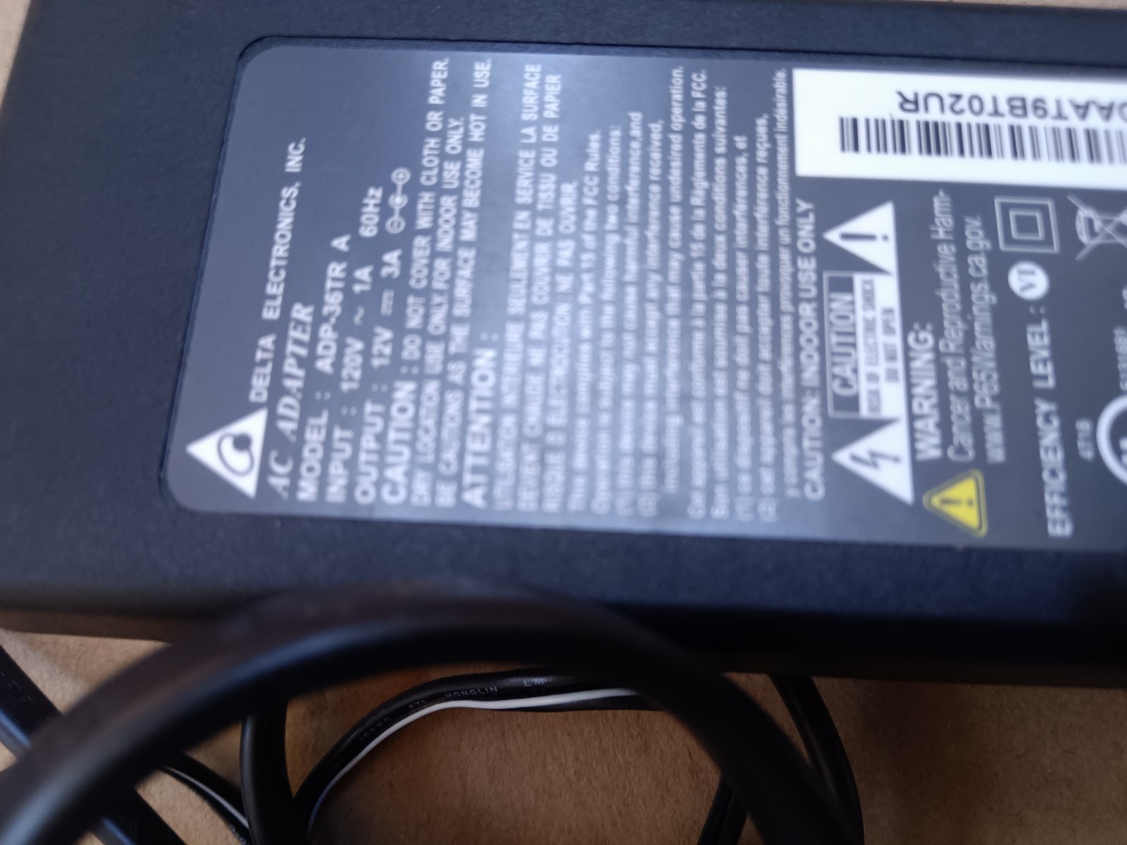 как выглядит Delta 12V 3A AC Adapter Power Supply- ADP-36TR A фото