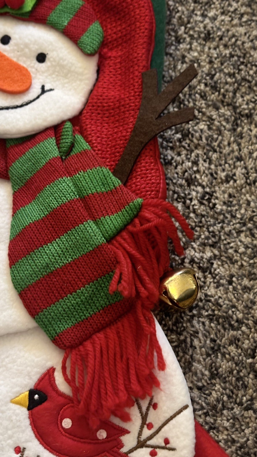 как выглядит Christmas Holiday 3D Stocking Green Red Snowman Cardinal Snowflake Holly Bell фото