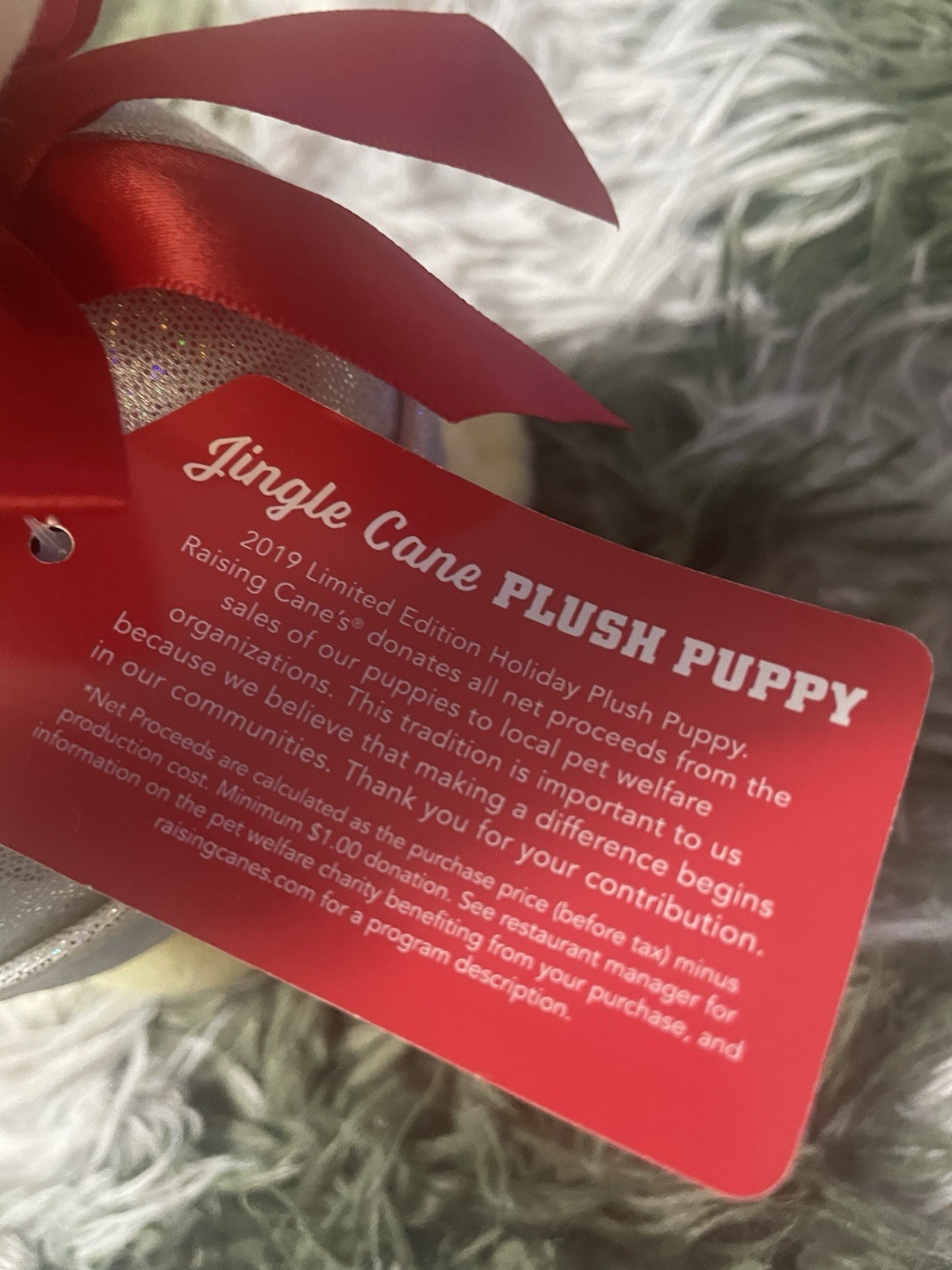 как выглядит Raising Canes 2019 Jingle Cane Bell Christmas Dog 8" Plush Stuffed Puppy фото