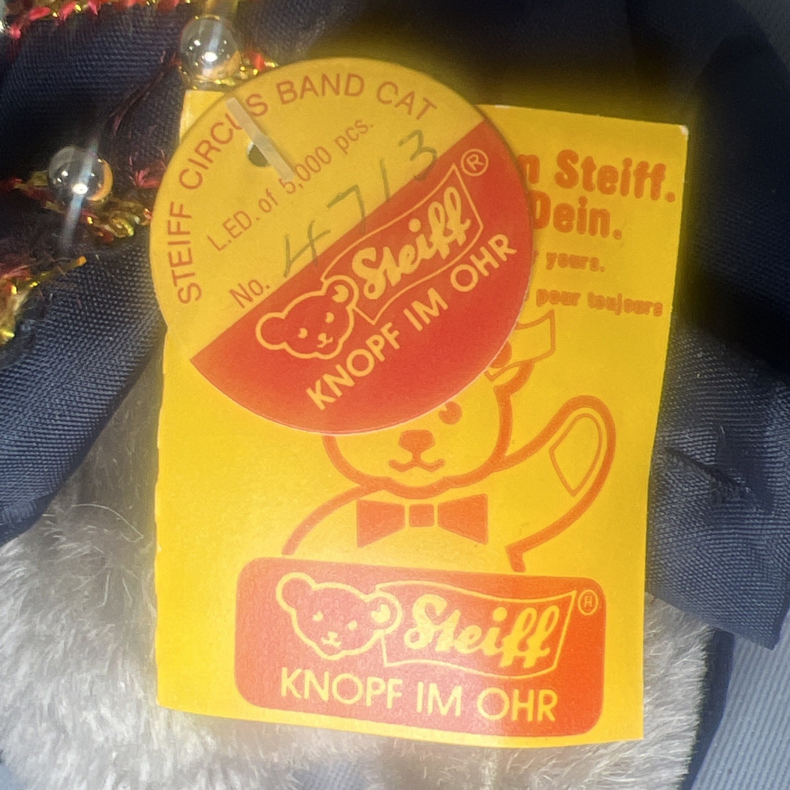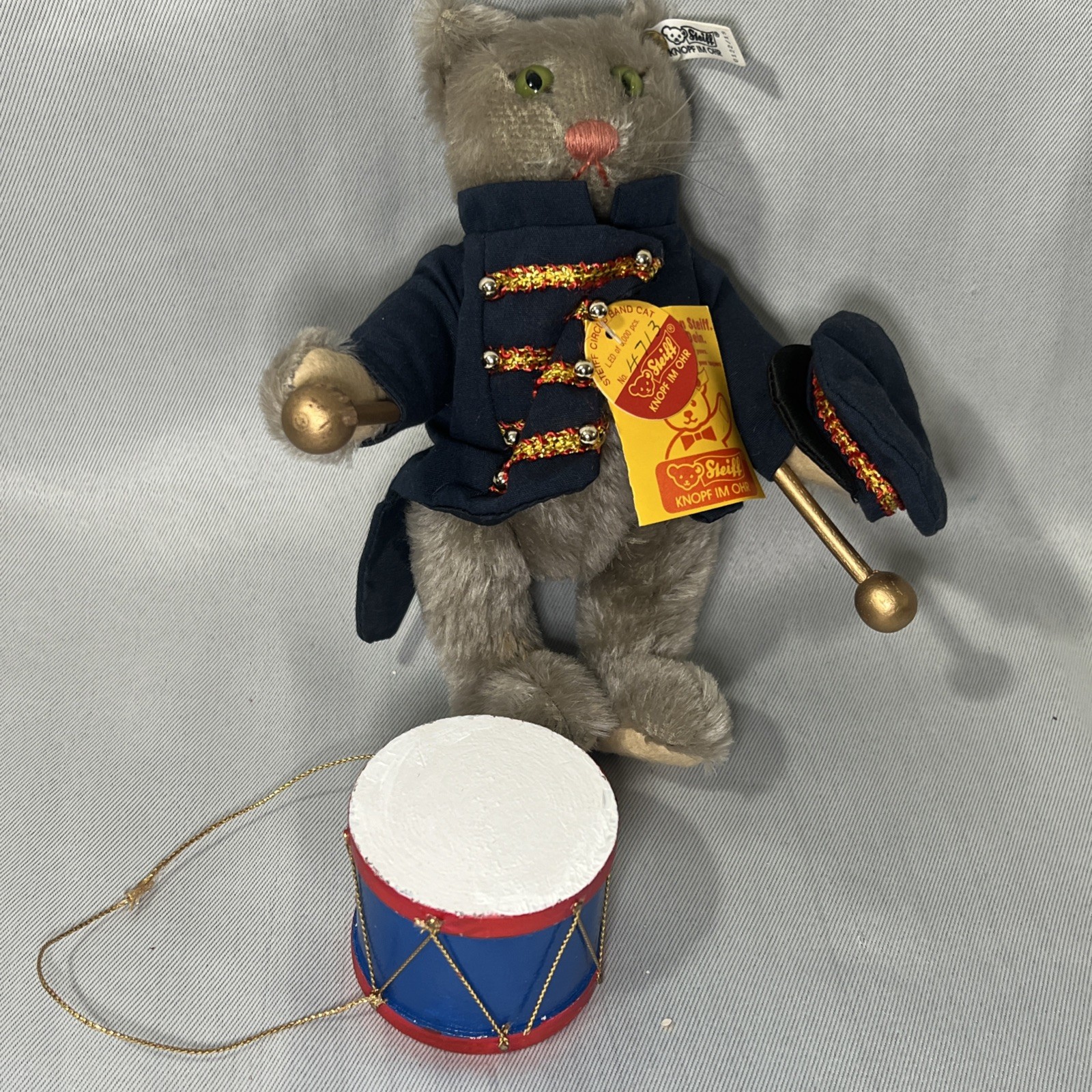 Steiff Circus Band Cat Mohair 1988 Limited Ed 4713 ID Button Tags Box no Drum