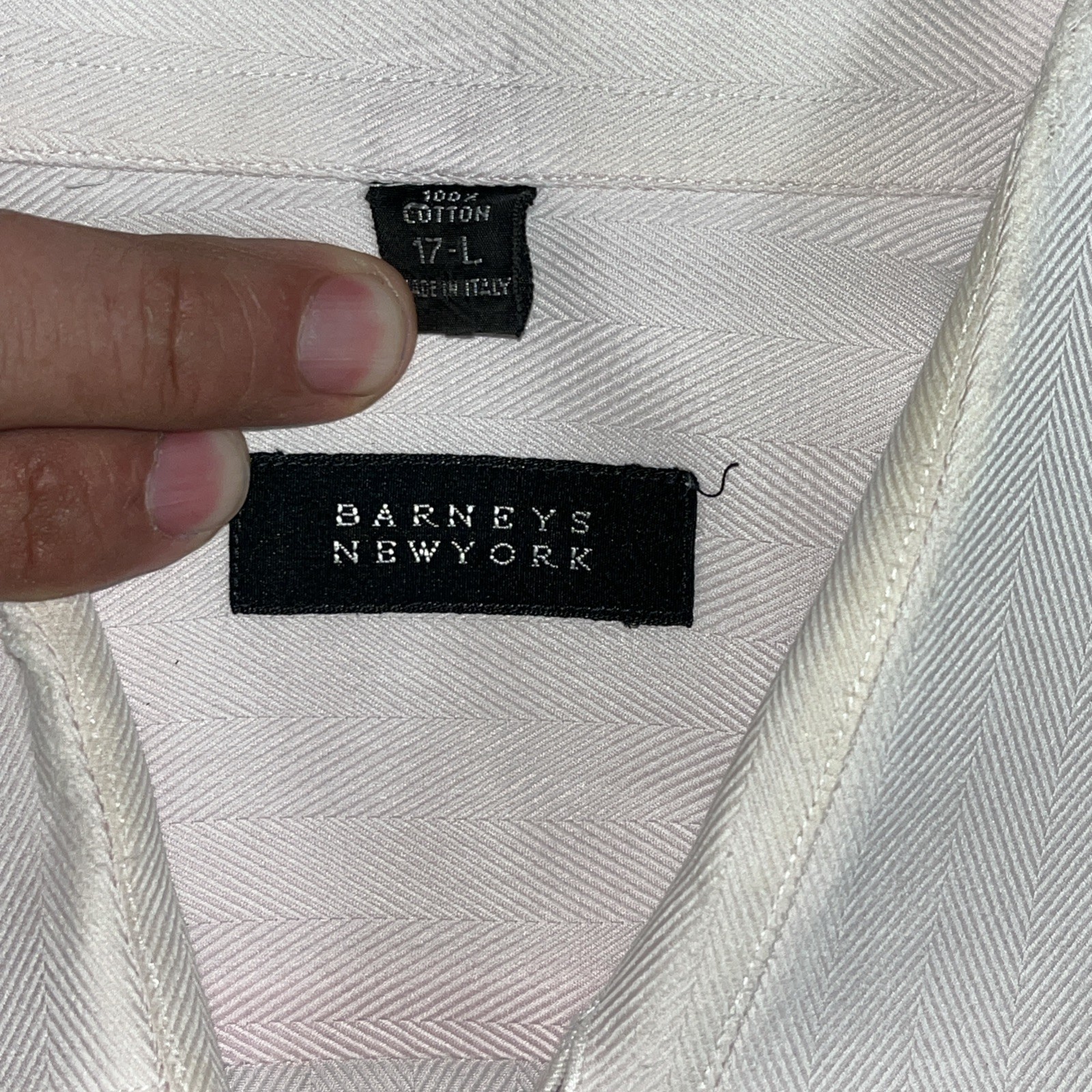 как выглядит BARNEYS NEW YORK Mens Size 17-L Solid Pink Long Sleeve Dress Shirt Italian фото