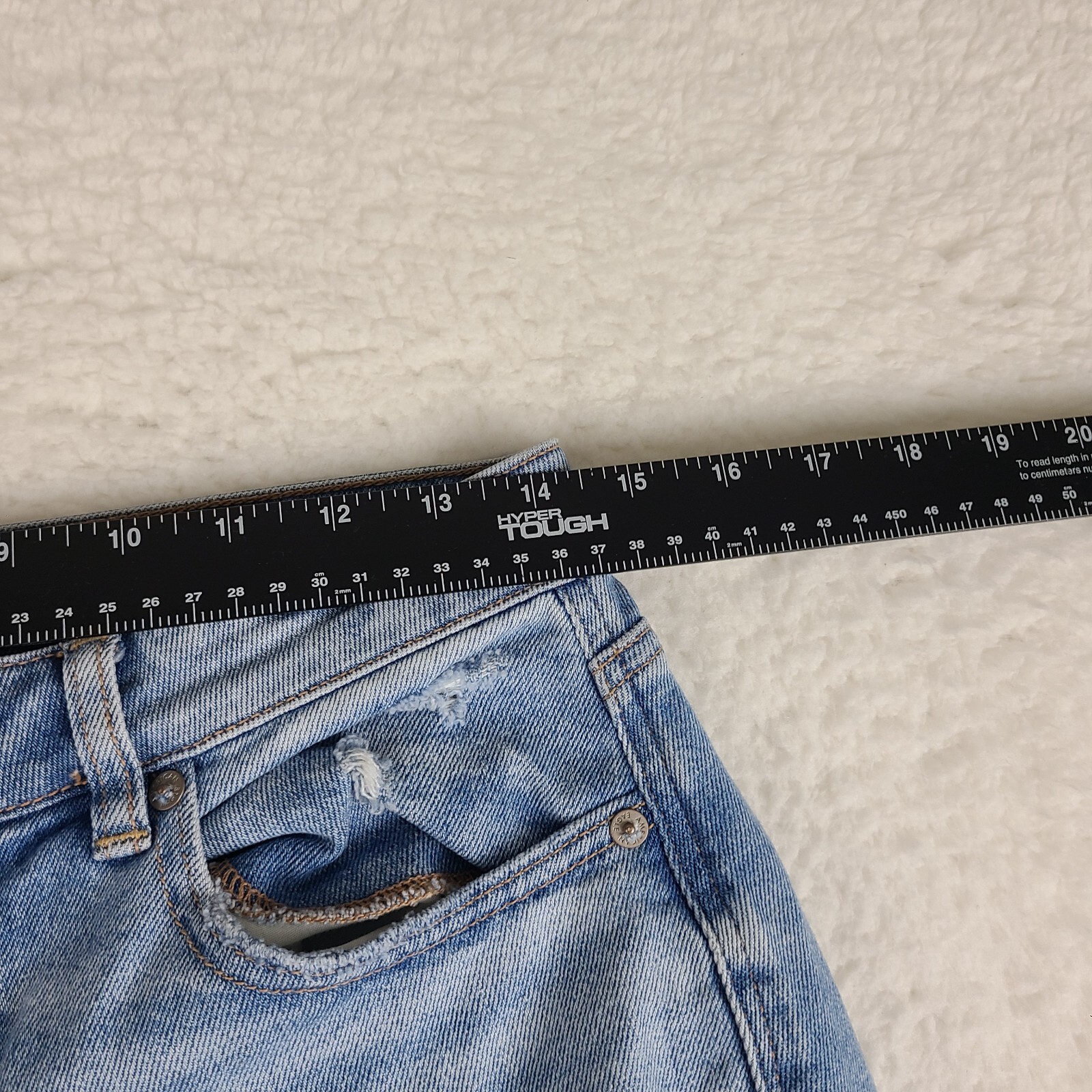 American Eagle Jeans Womens 6 Blue Mom Jean Stretch Distress Fray Light Wash