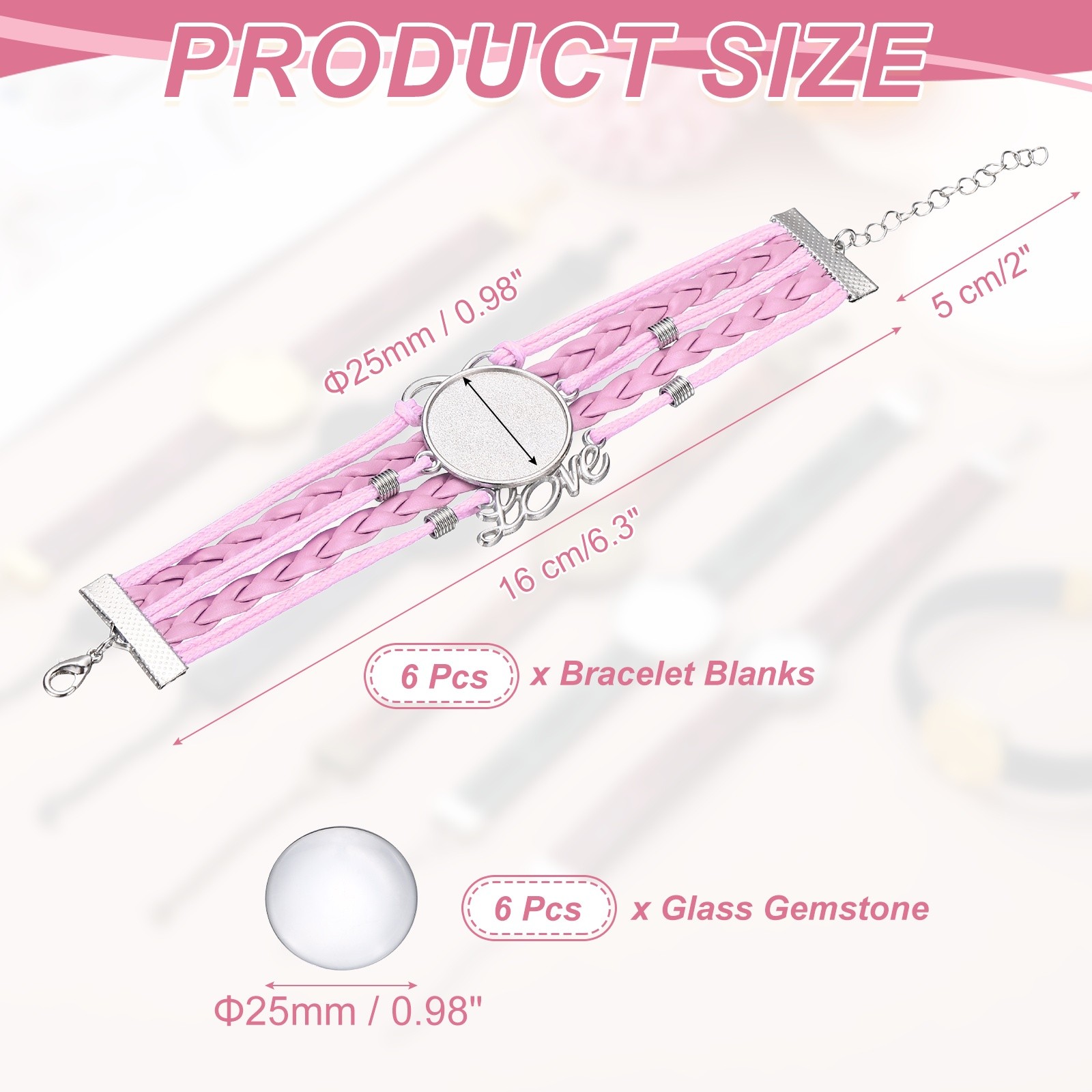Bracelet Blanks for Jewelry Making 6pcs 25mm Pink
