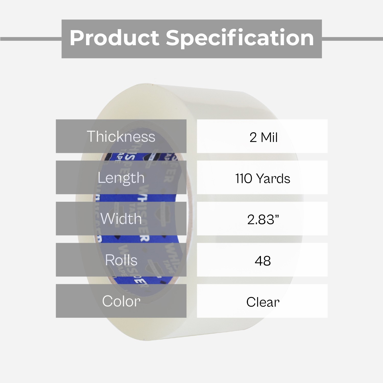 Clear Carton Sealing Packing Whisper Tape 2.83 Inch x 110 Yards 2 Mil 48 Rolls