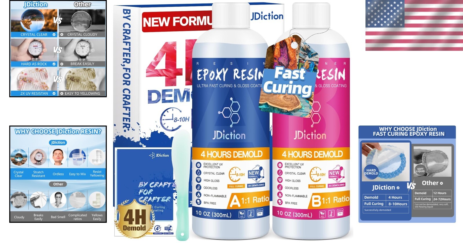 20OZ Non-Toxic Fast Cure Epoxy Resin - 4 Hour Demold, UV Protection Easy Mix