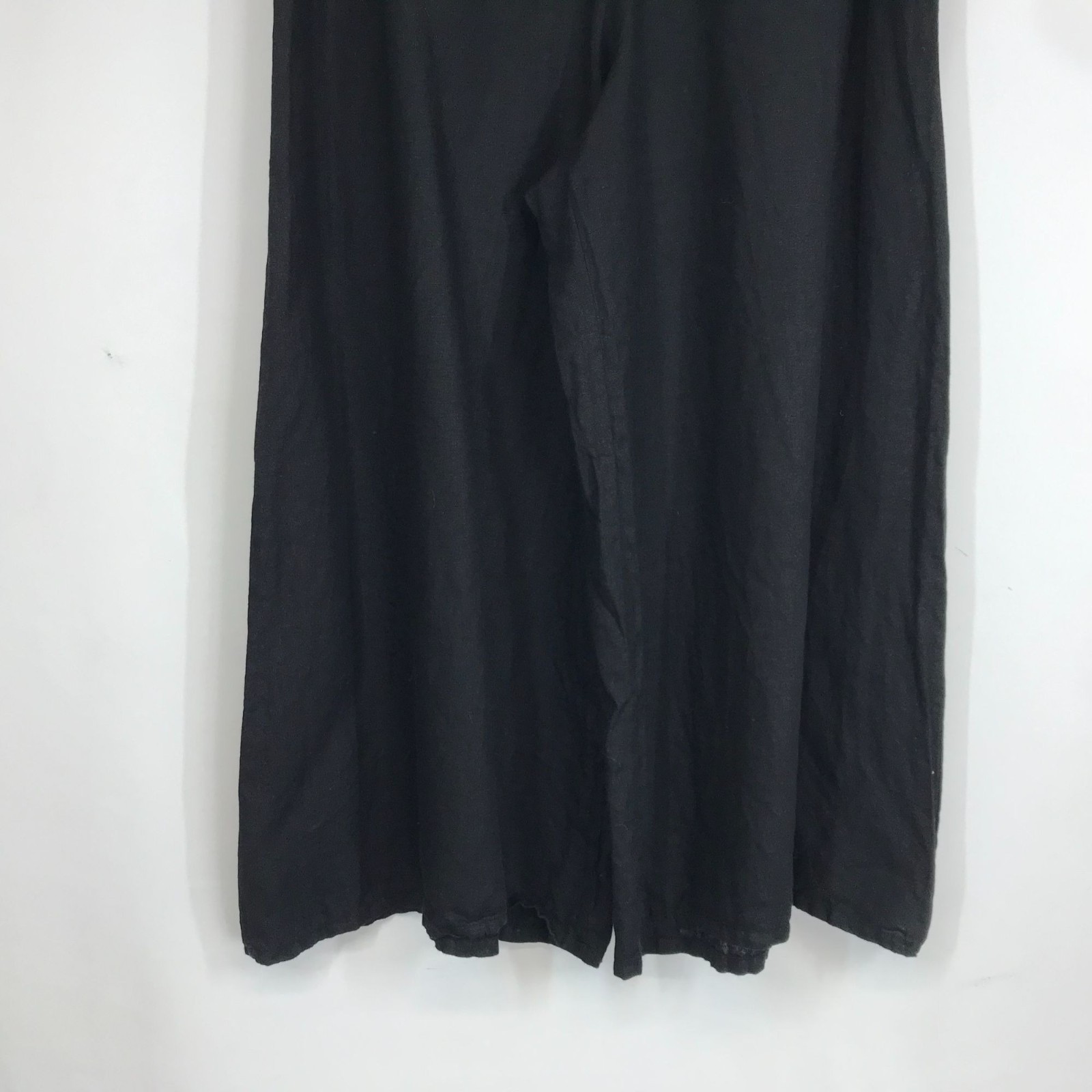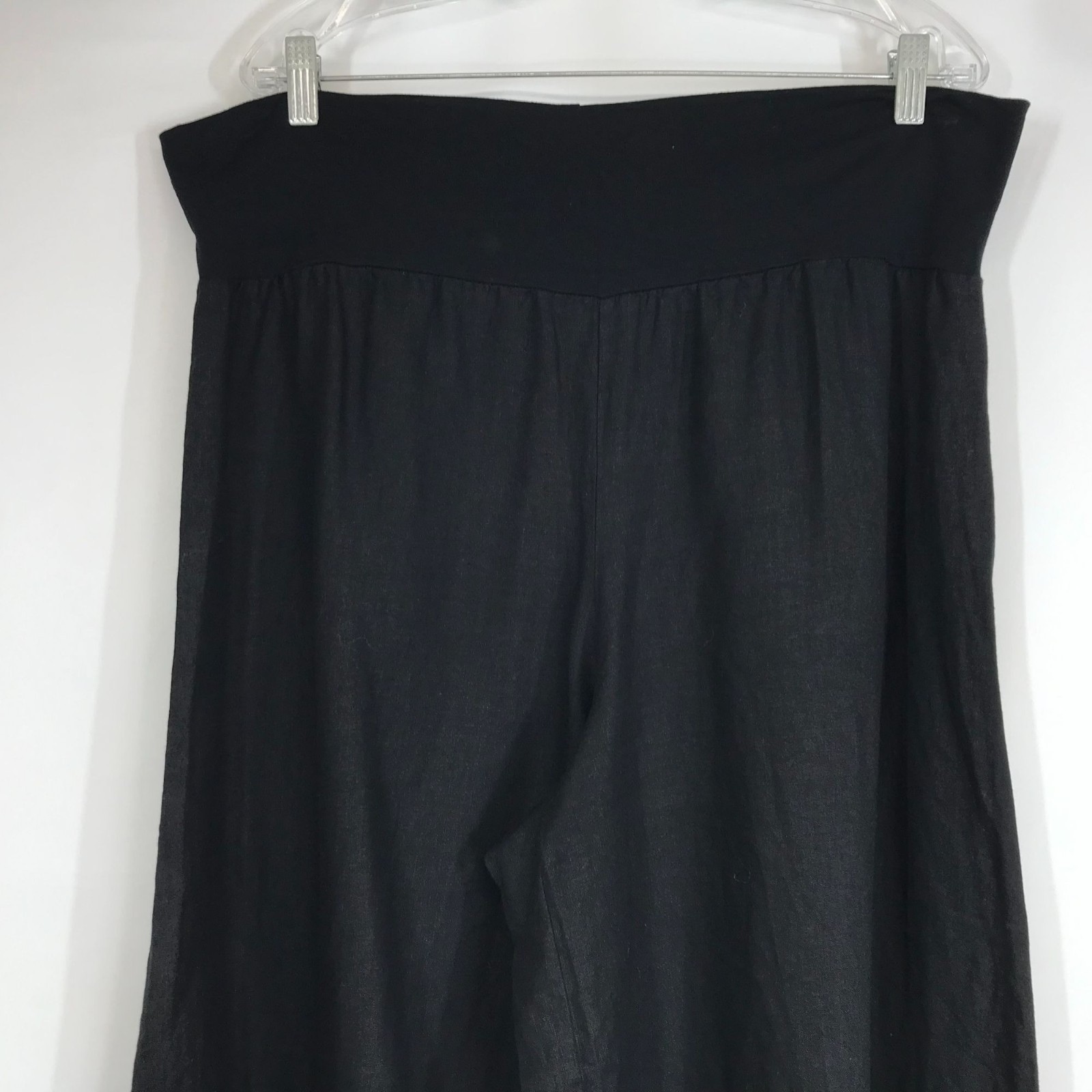 как выглядит BRYN WALKER - WOMENS LARGE - BLACK ELASTIC WAIST WIDE LEG 100 LINEN CROP PANTS фото