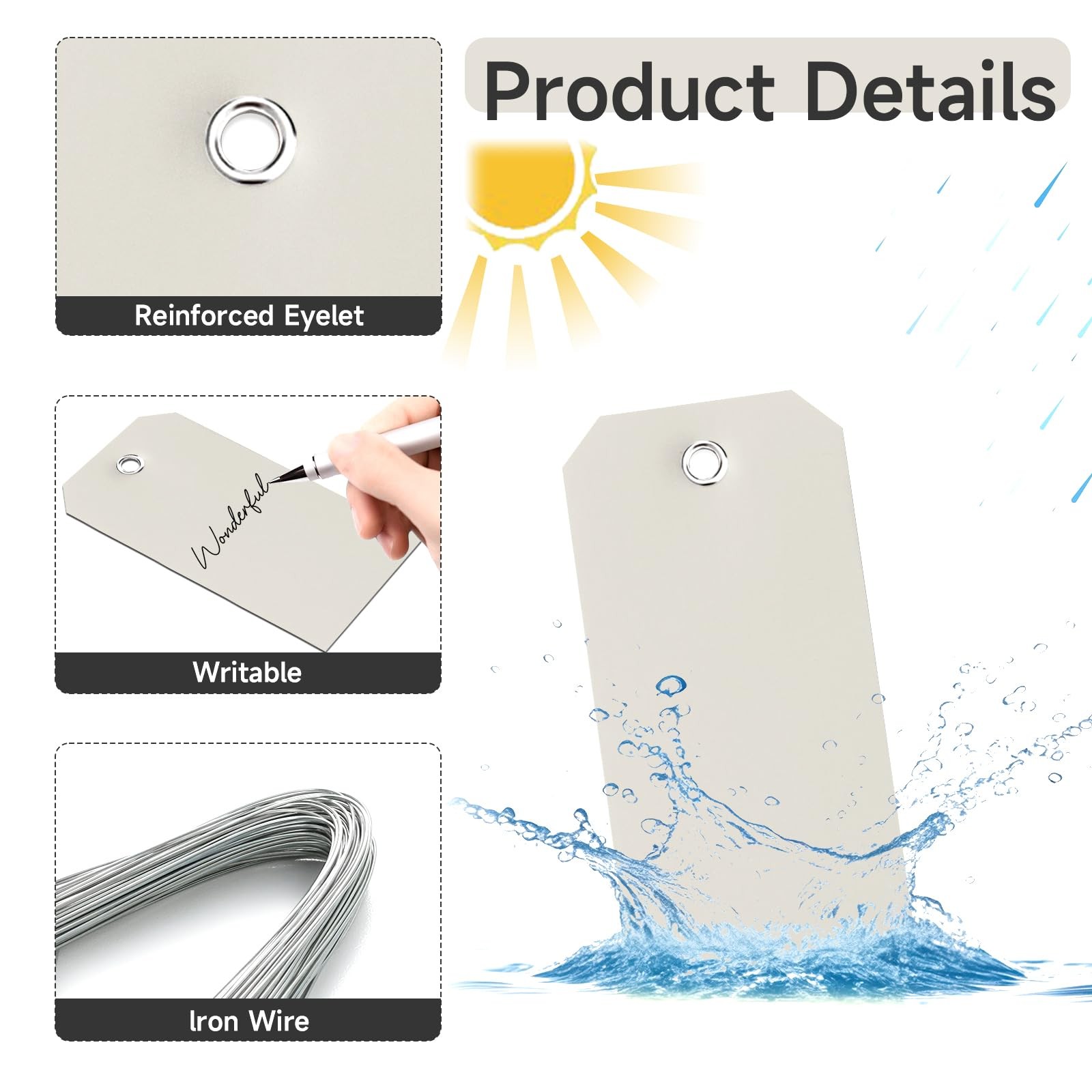 как выглядит 100 Plastic Shipping Tags with Wires, Blank Labeling Tags, Waterproof Hang Tags фото