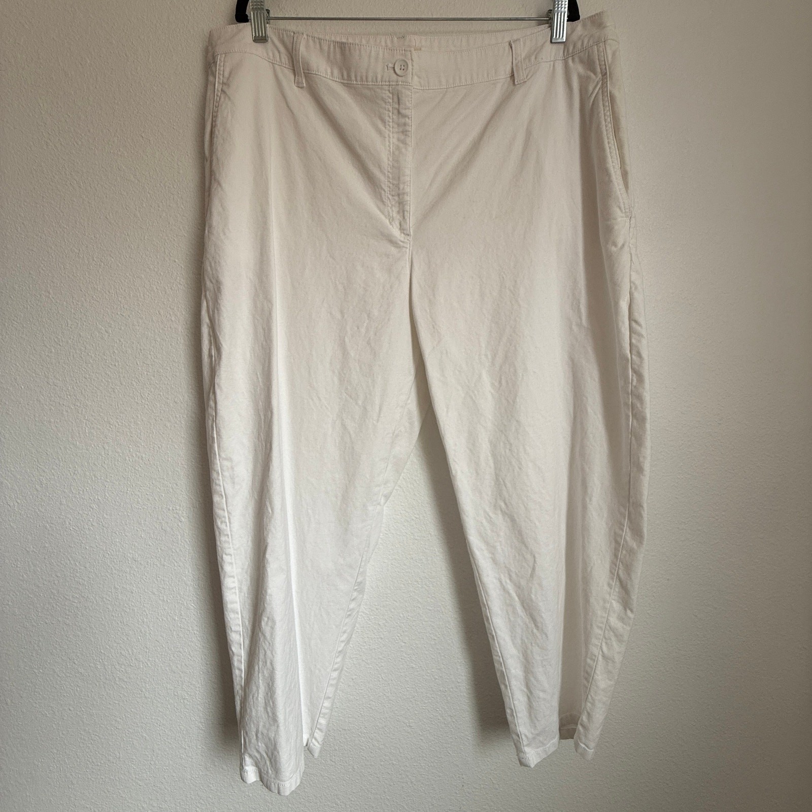 Eileen Fisher Cotton Hemp Tapered Chino Trouser Pant in White Sz 22 Plus Size