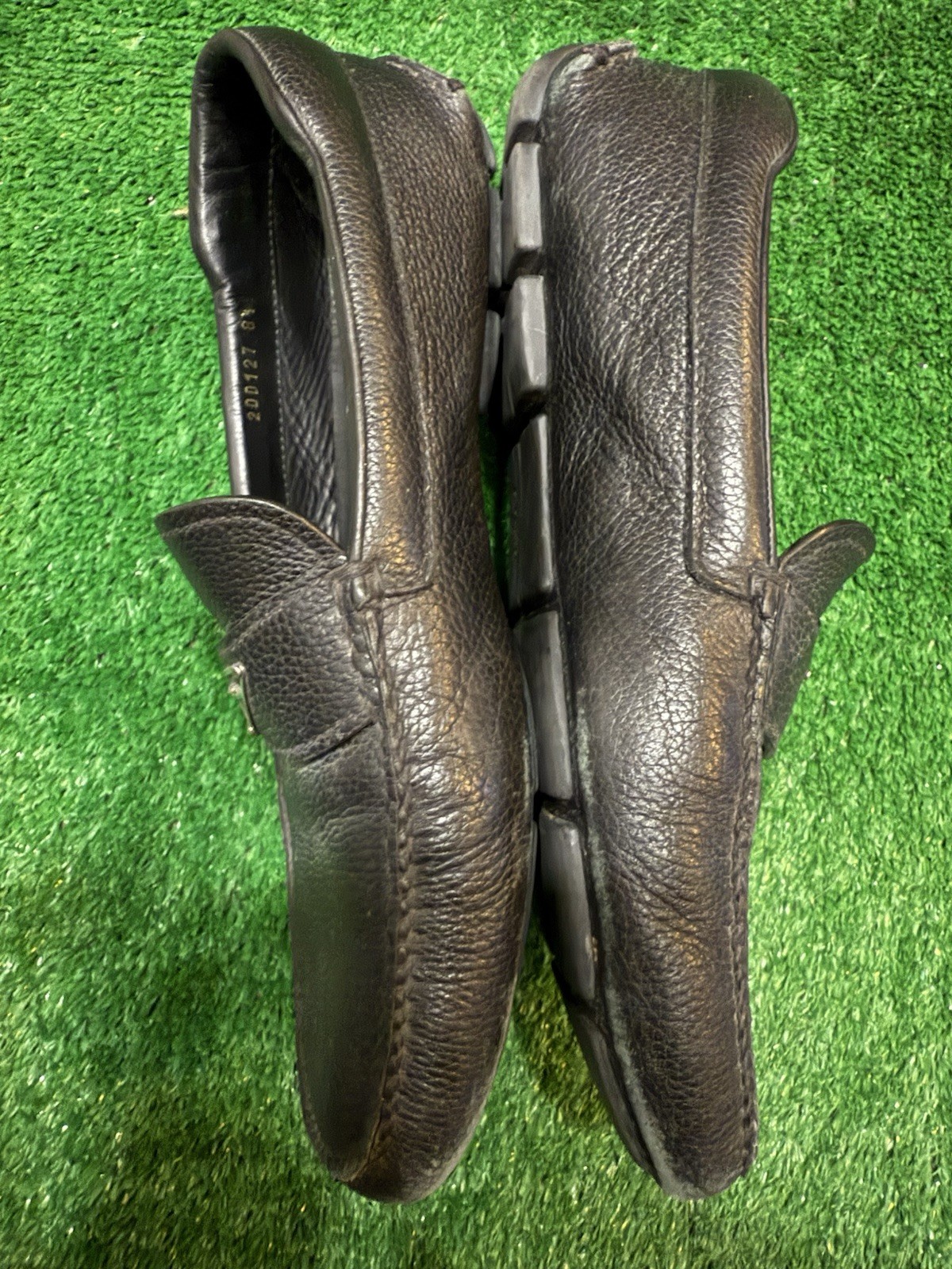 Prada Black Leather Driving Loafers with Metal Logo Prada Mens SZ 8.5 UK 9.5 USA