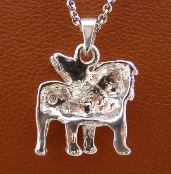 Small Sterling Silver Bulldog English Bulldog Angel Pendant