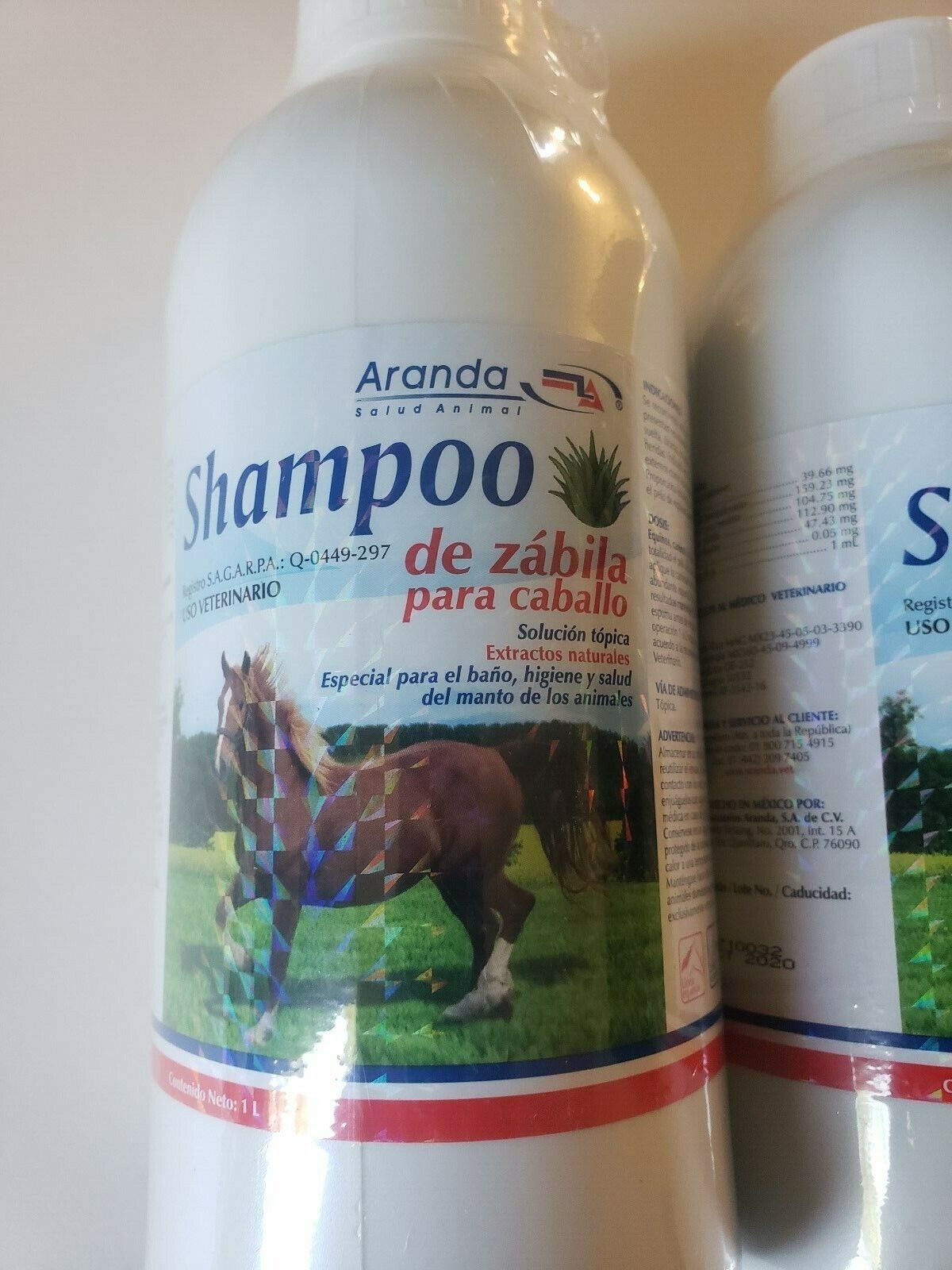 SHAMPOO DE ZABILA PARA CABALLO / ARANDA ALOE VERA SHAMPOO FOR HORSES 1L. 2 Pack