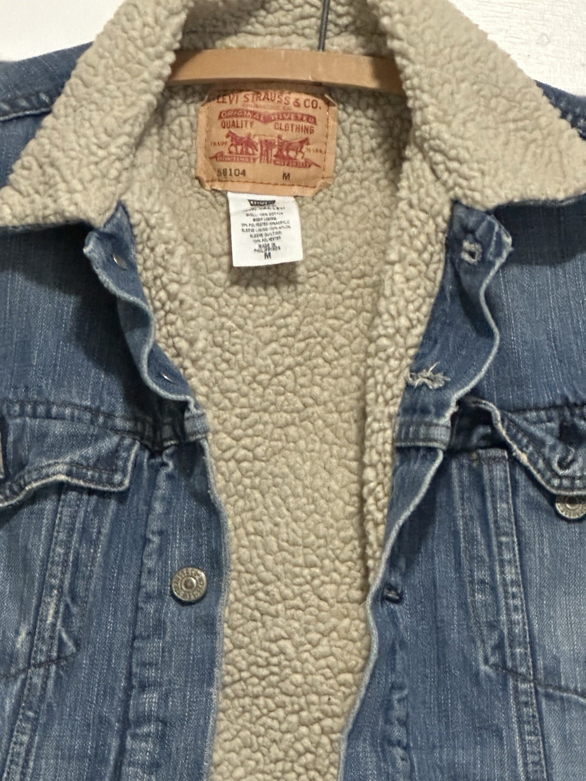 Vintage 2000s Levis Denim Sherpa Lined Jean Jacket Trucker 58104 Women M See Des