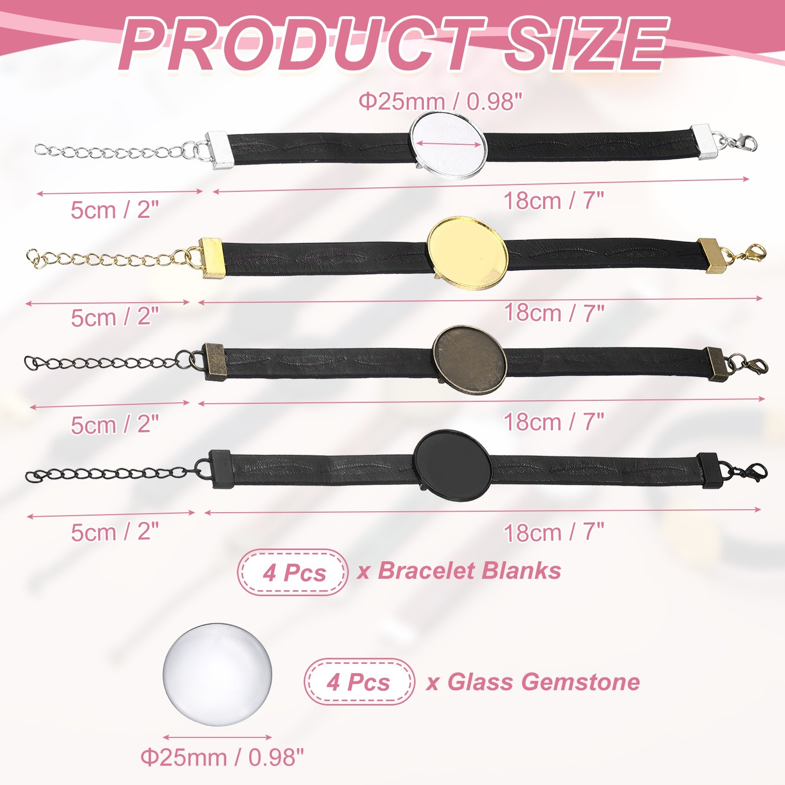 Bracelet Blanks for Jewelry Making 4pcs 25mm Black