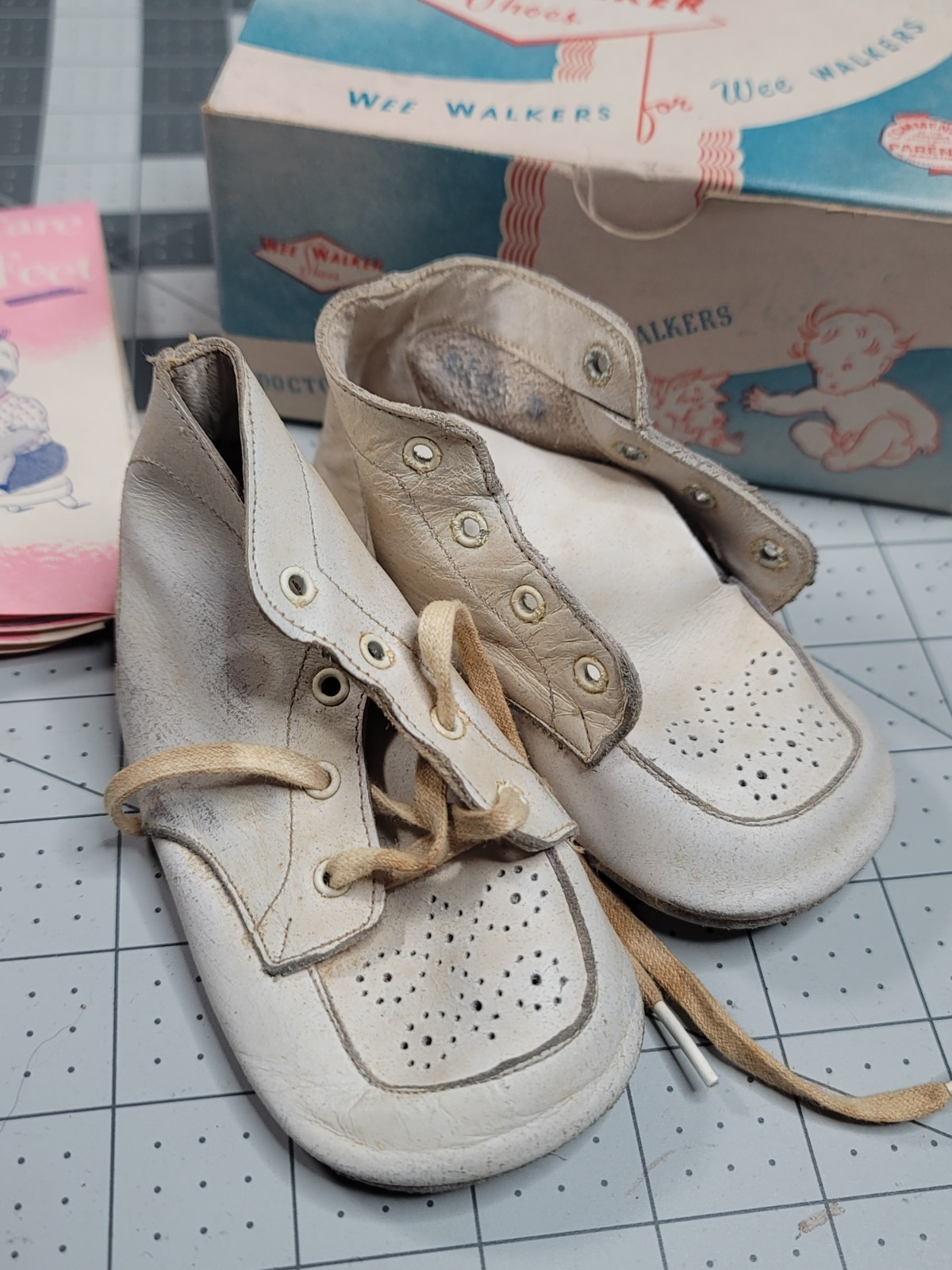 Vintage Baby Shoes With Original Box Papers Wee Walker Made In USA 1940s