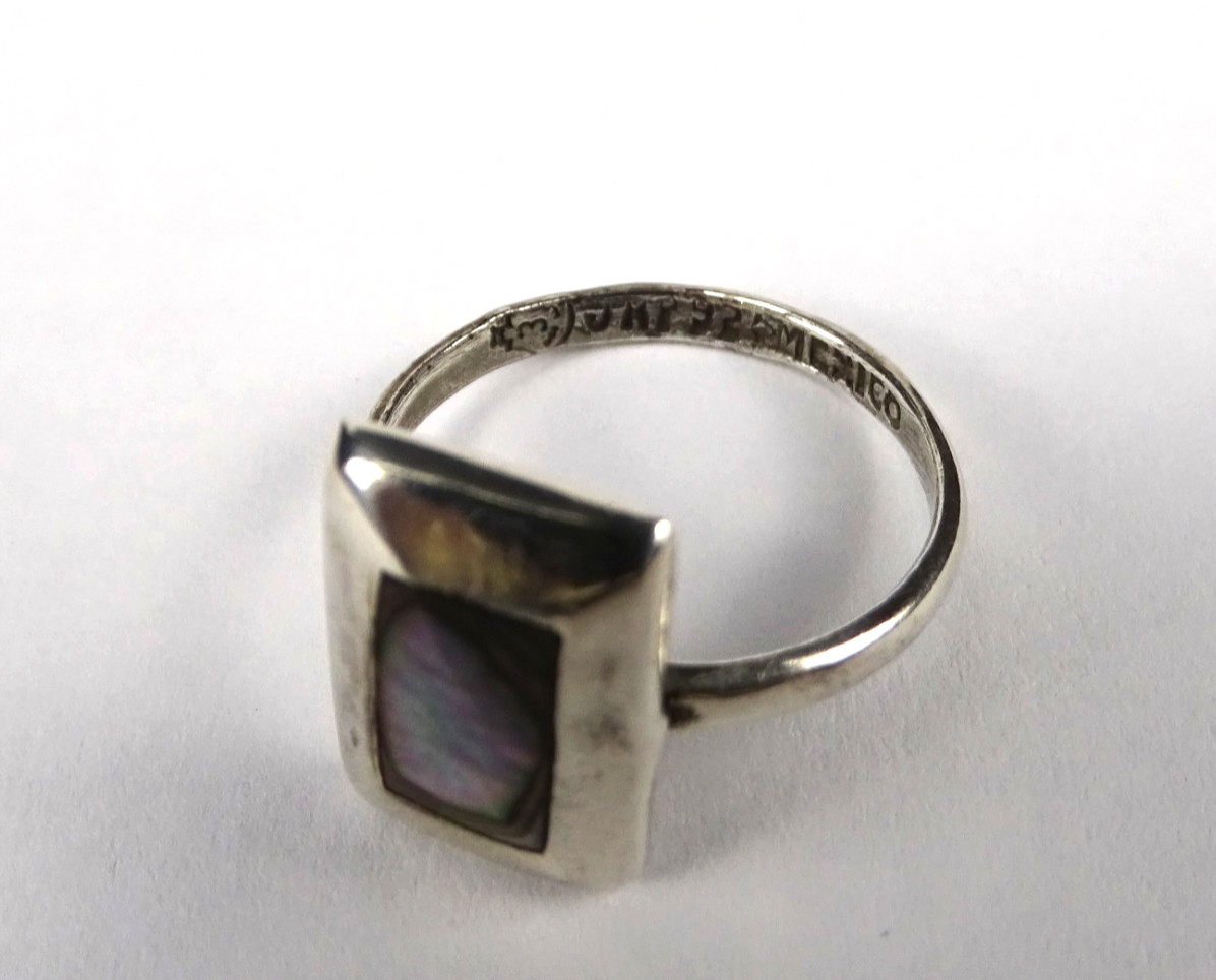 как выглядит Sterling Abalone Mexico Ring sz 7.5 Rectangular Setting, Inlaid Abalone Shell фото