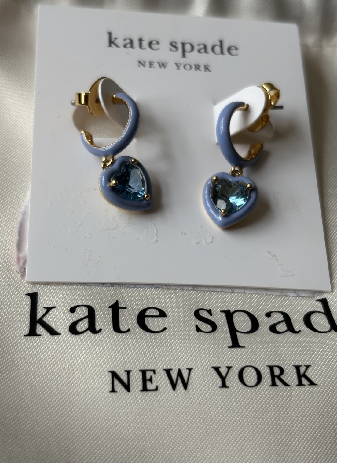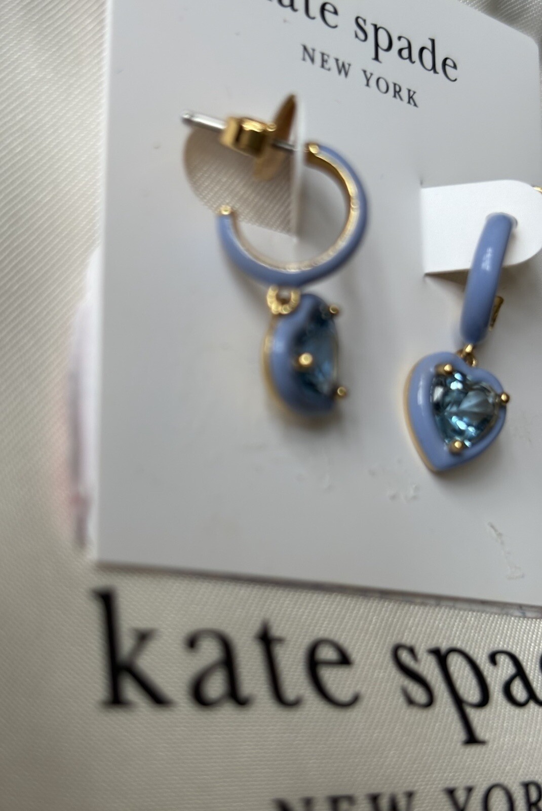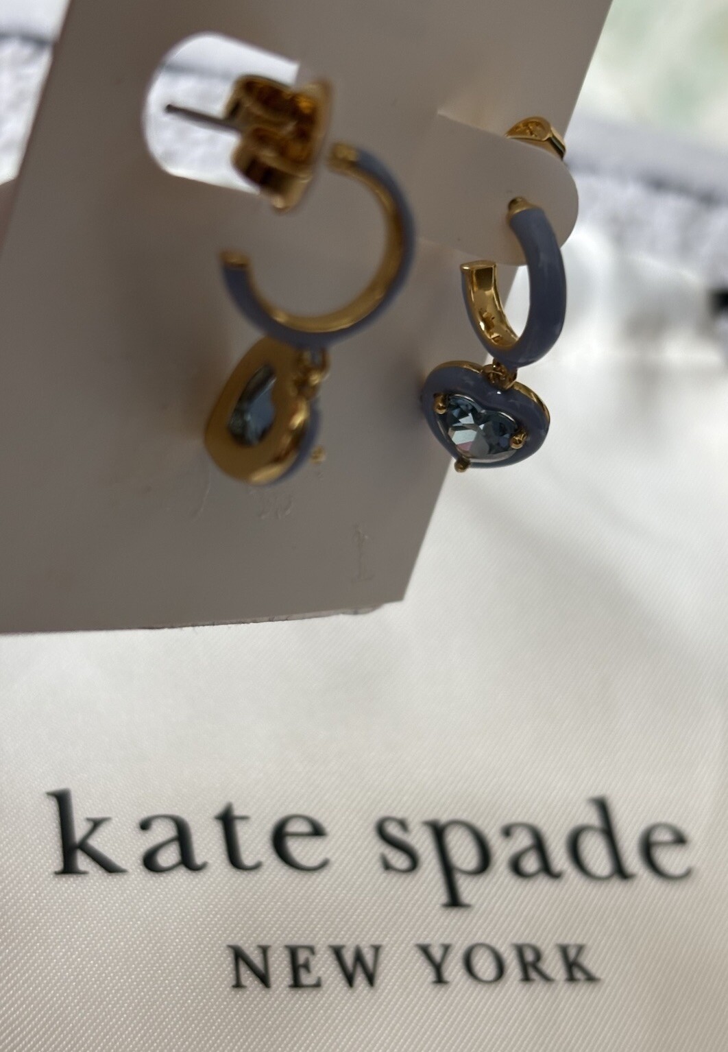как выглядит Kate Spade Heart Dangle 9mm Kids/Girls Earrings Hoop Cubic Zirconia Gold /Blue фото