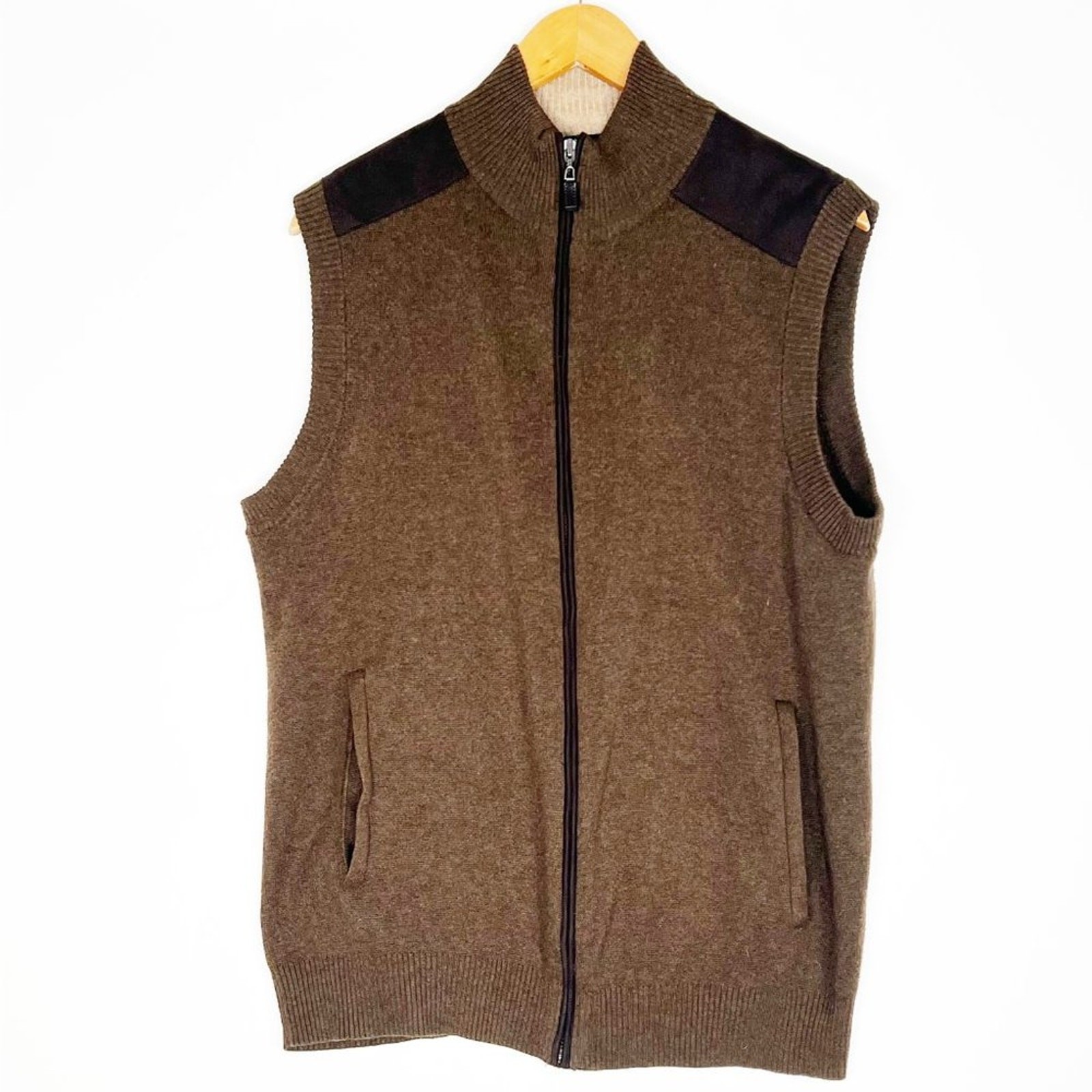 как выглядит Roundtree Yorke Heather Brown Lightweight Cotton Full-zip Sweater Vest фото