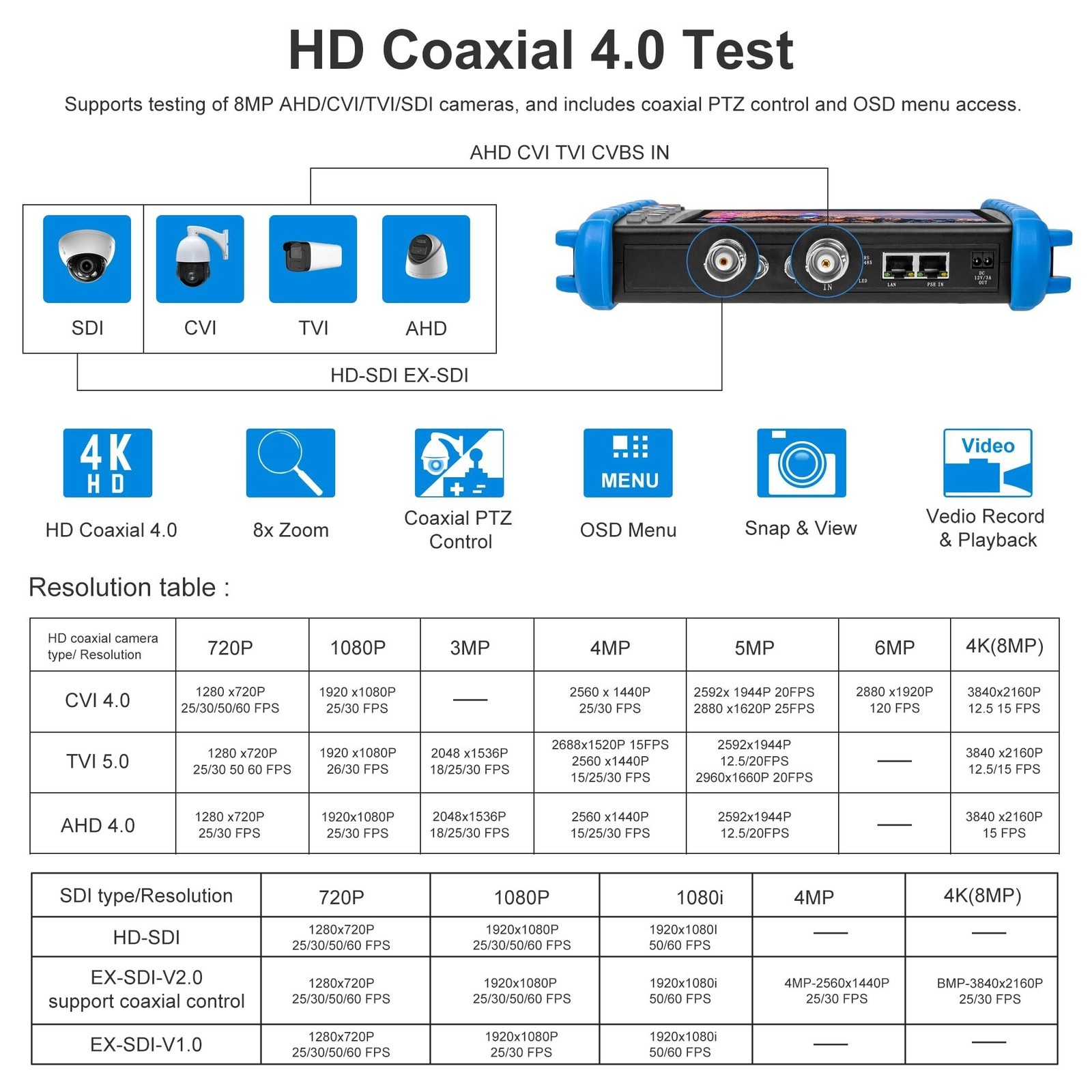 4in1 Tester Monitor TVI CVI AHD CVBS Security CCTV IP Camera Test Monitor 7 8MP