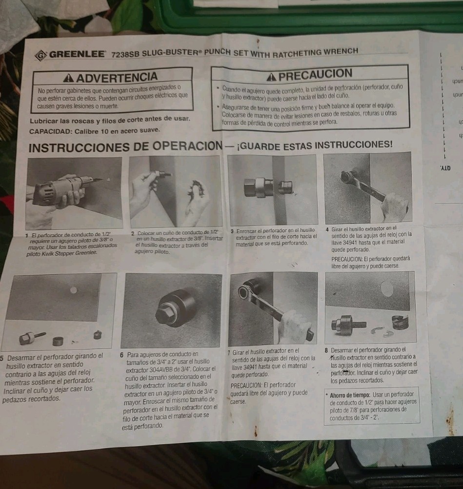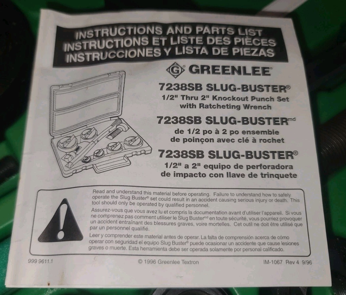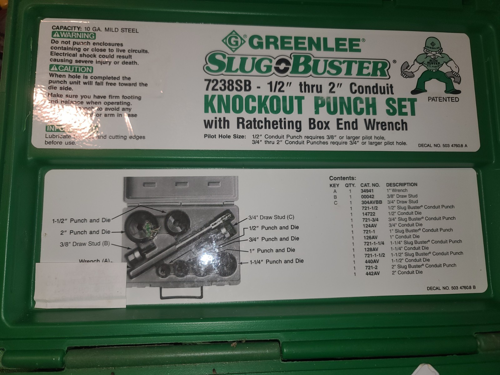 • GREENLEE 7238SB Slug-Buster Punch Knockout Kit w/Ratchet Wrench Set - PRE-OWNED
