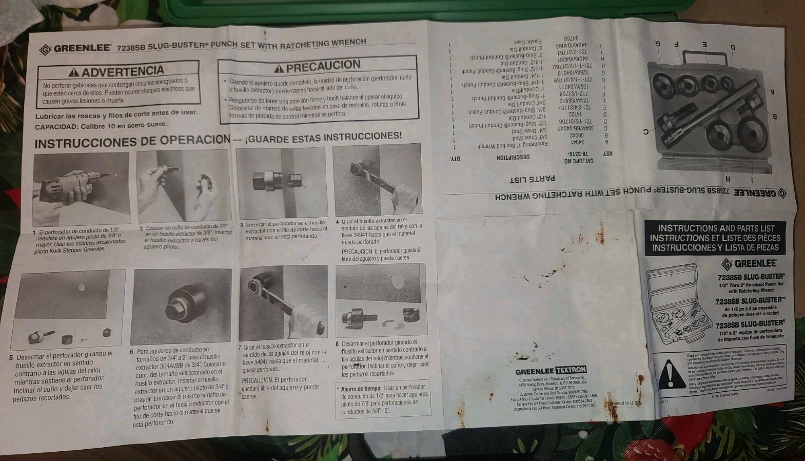 GREENLEE 7238SB Slug-Buster Punch Knockout Kit w/Ratchet Wrench Set - PRE-OWNED