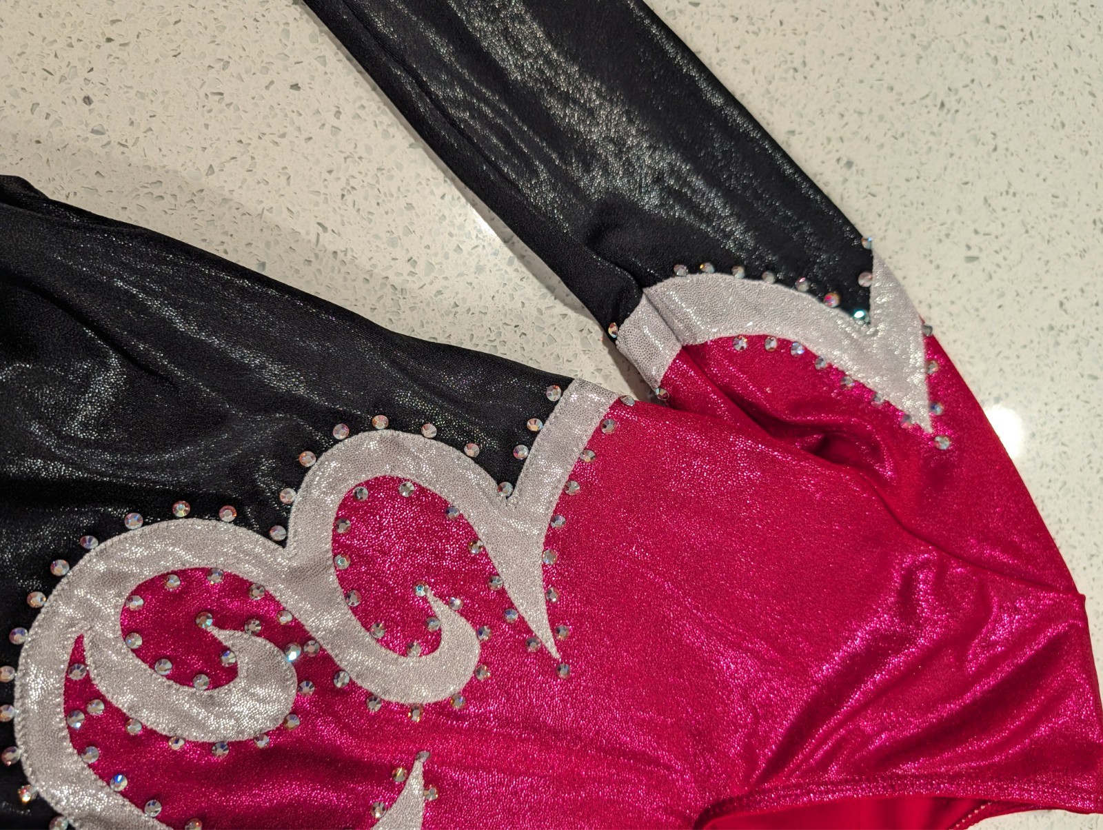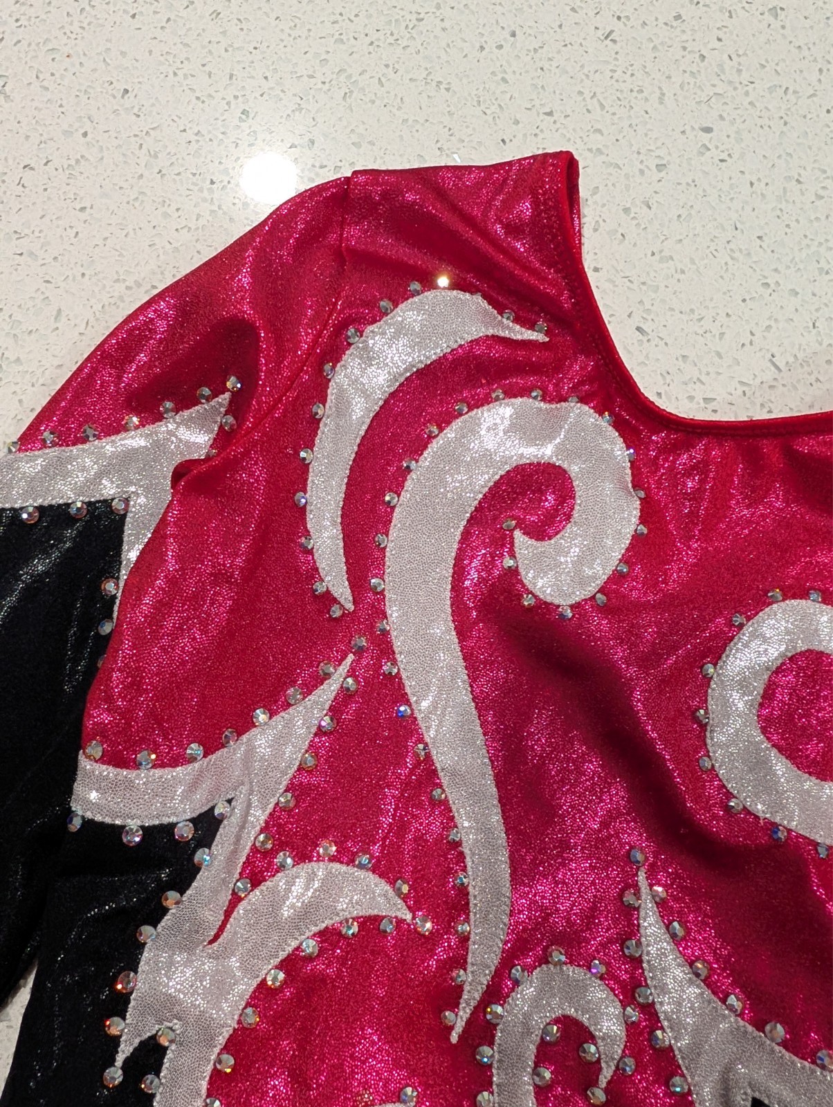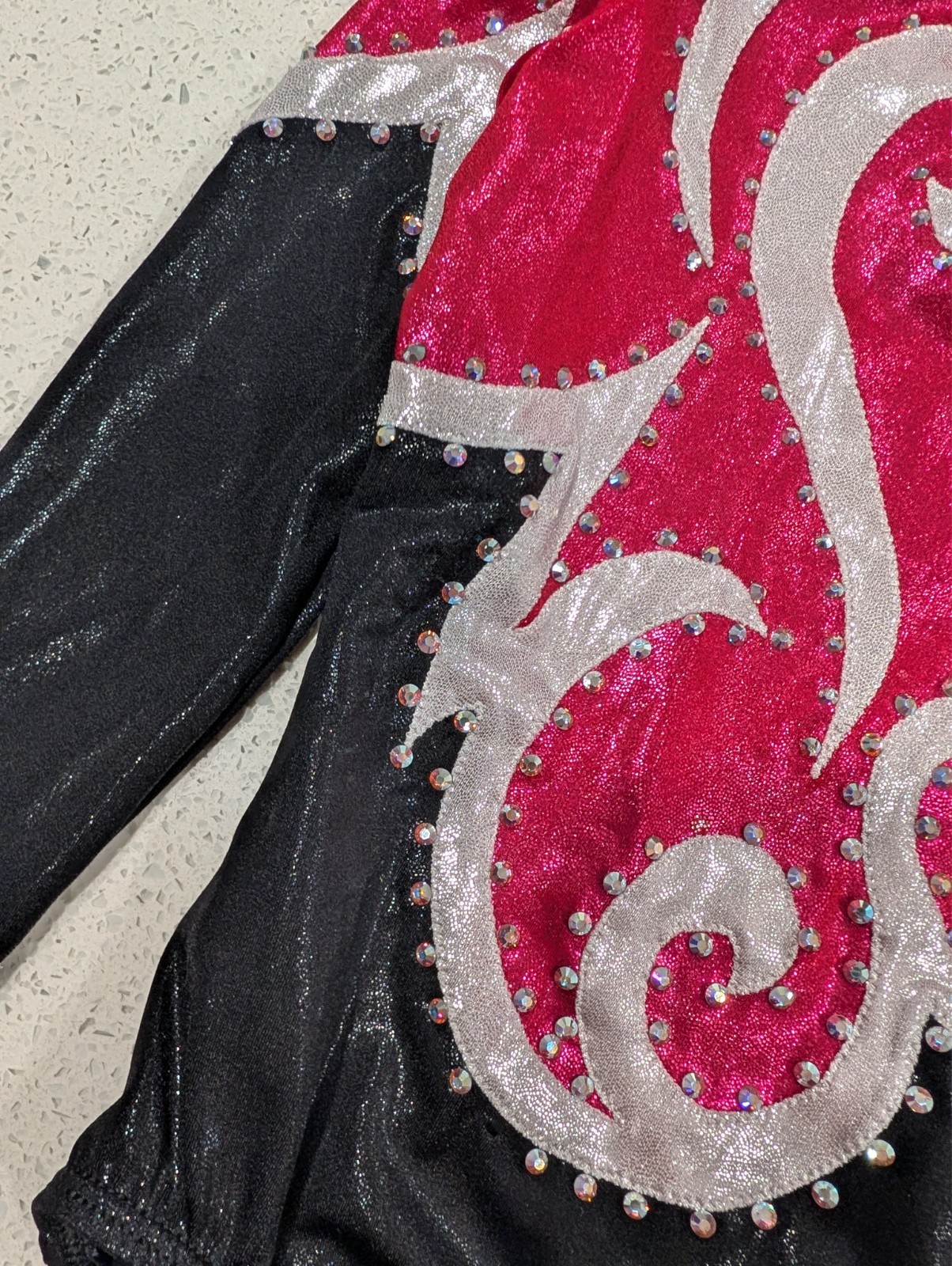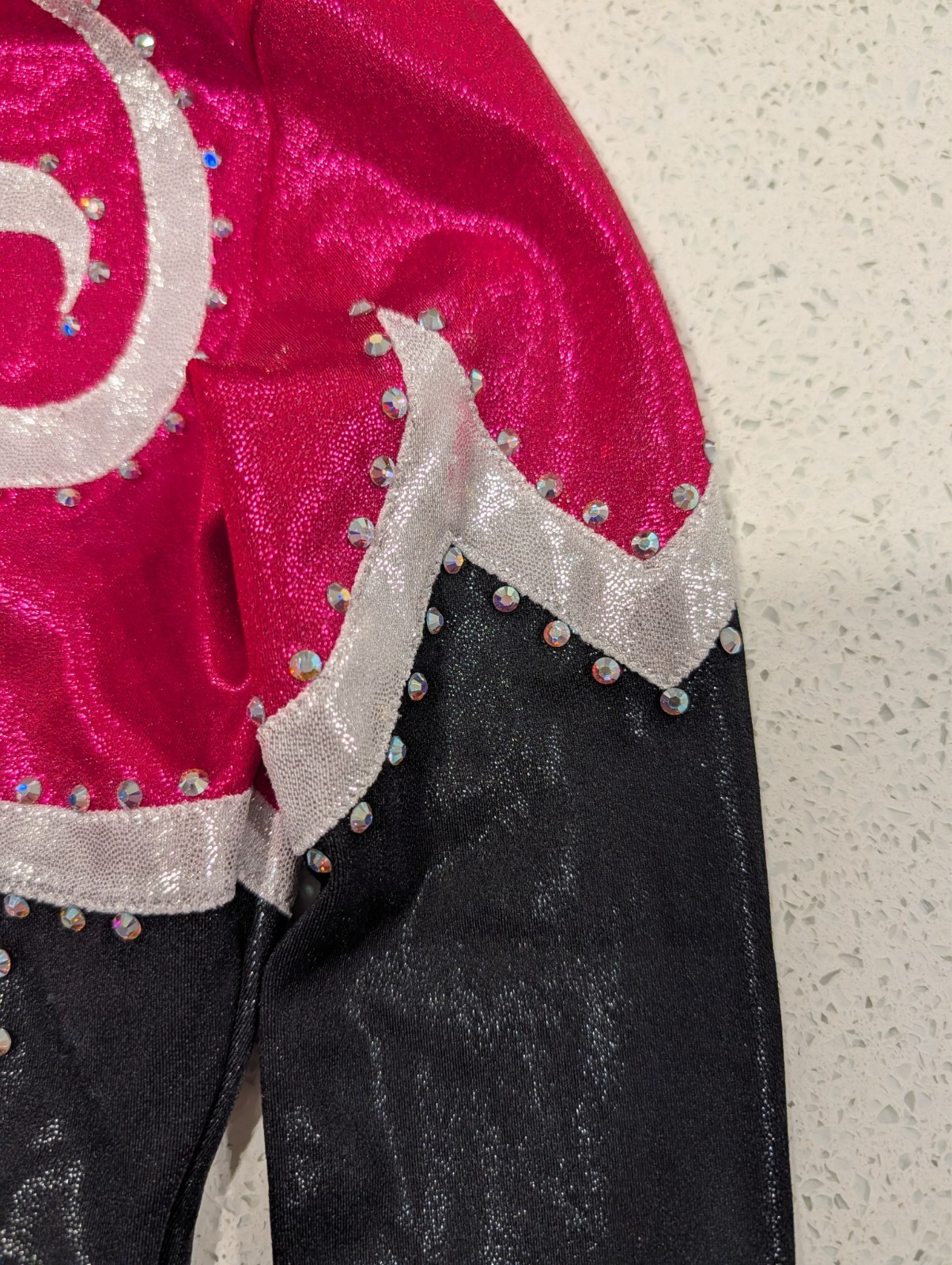 как выглядит CHRISTMAS Magenta GK Elite Large Gymnastics Dance Leotard Competition RHINESTONE фото
