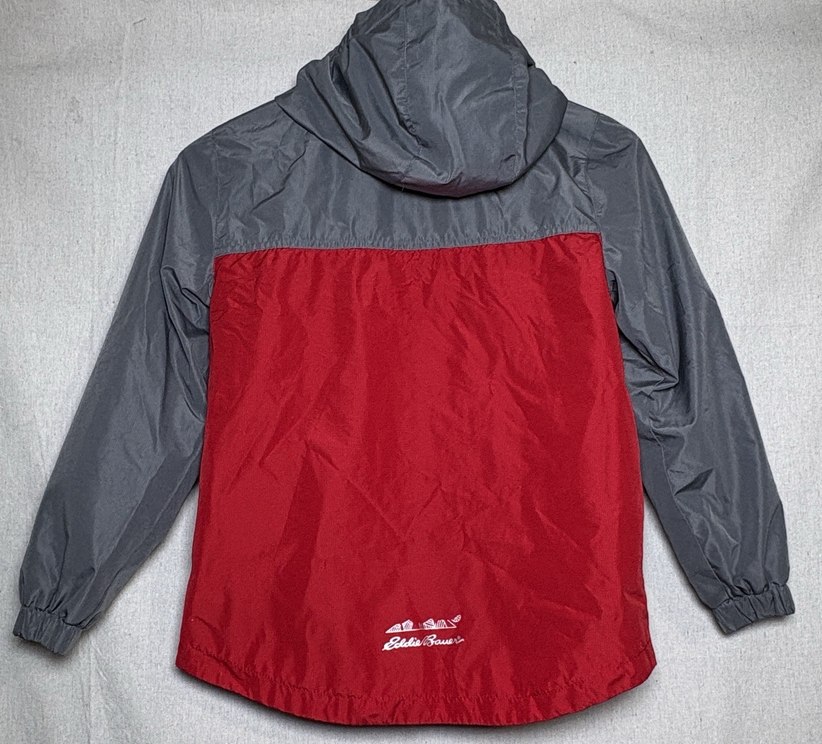 Eddie Bauer Kids Double Zip Rain Hooded Windbreaker Jacket Red Gray Sz S 7/8