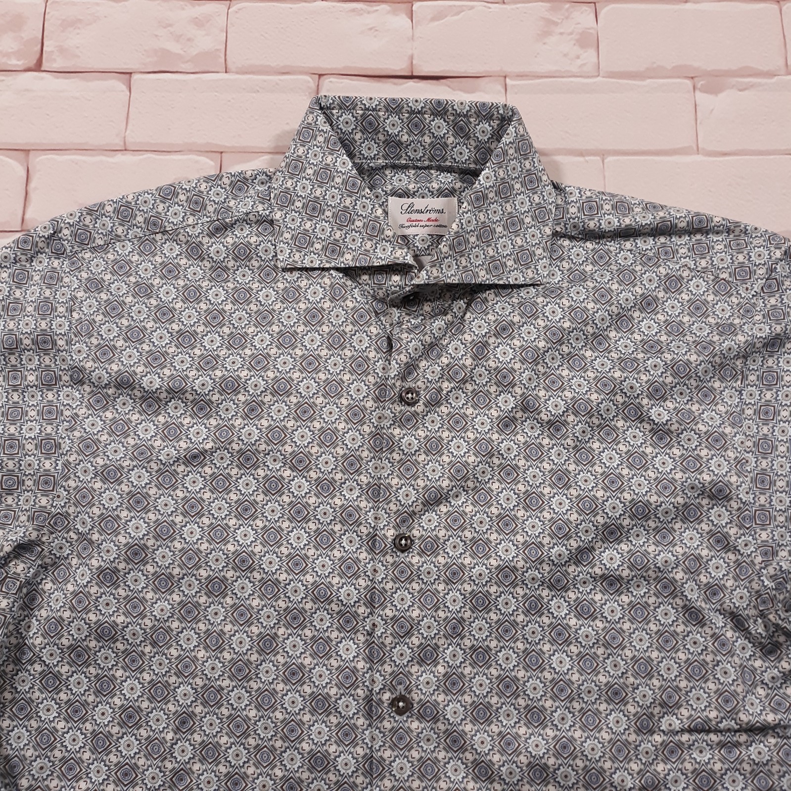 Stenstroms Shirt Mens Size 15.5 - 39 Small Twofold Cotton Medallion Spread