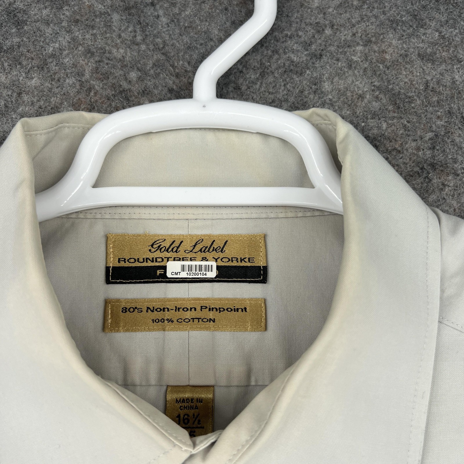 как выглядит Roundtree Yorke Gold Label Button Up Shirt Men 16.5 35 Beige Non Iron Pinpoint фото