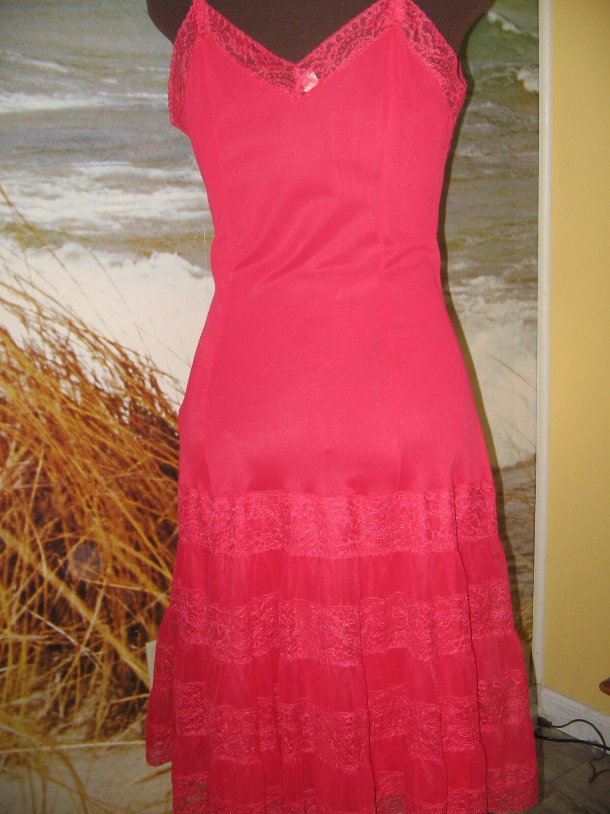 Vintage Full Slip Red Pin Up Style / Petticoat Double Skirt Nylon Lingerie