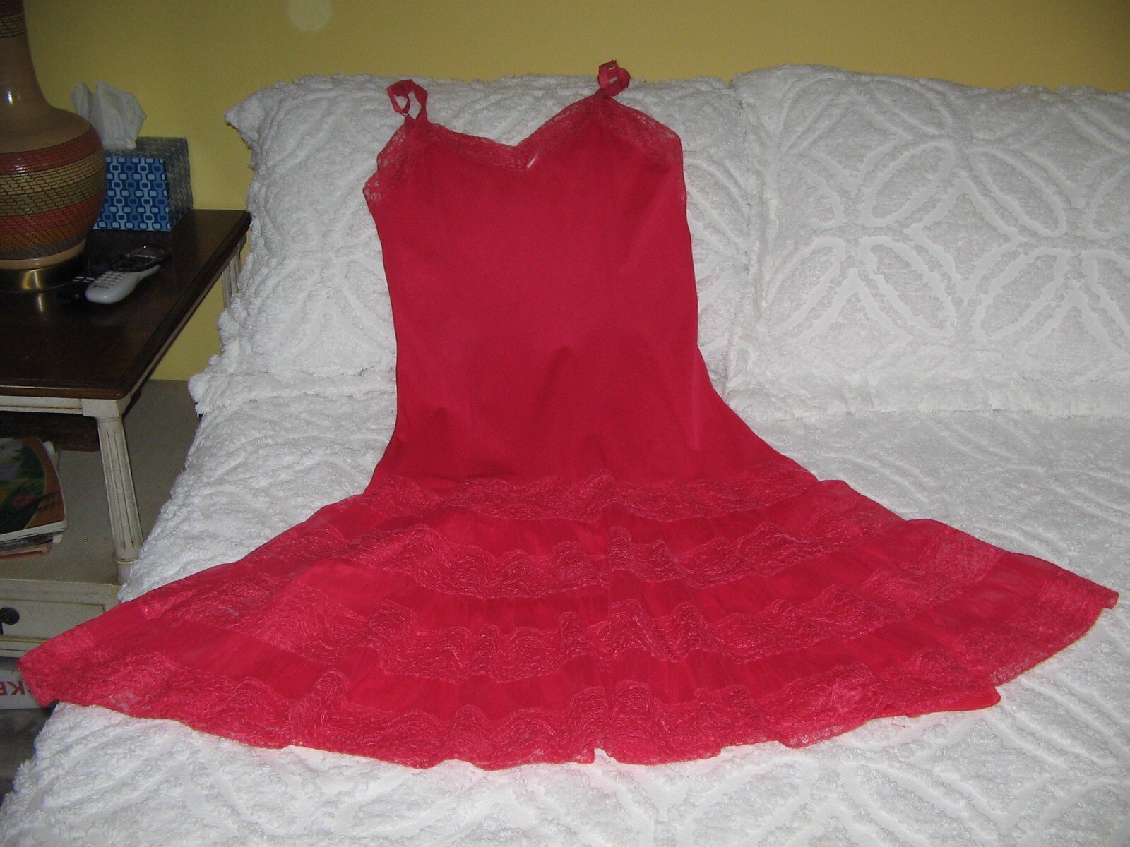 как выглядит Vintage Full Slip Red Pin Up Style / Petticoat Double Skirt Nylon Lingerie фото