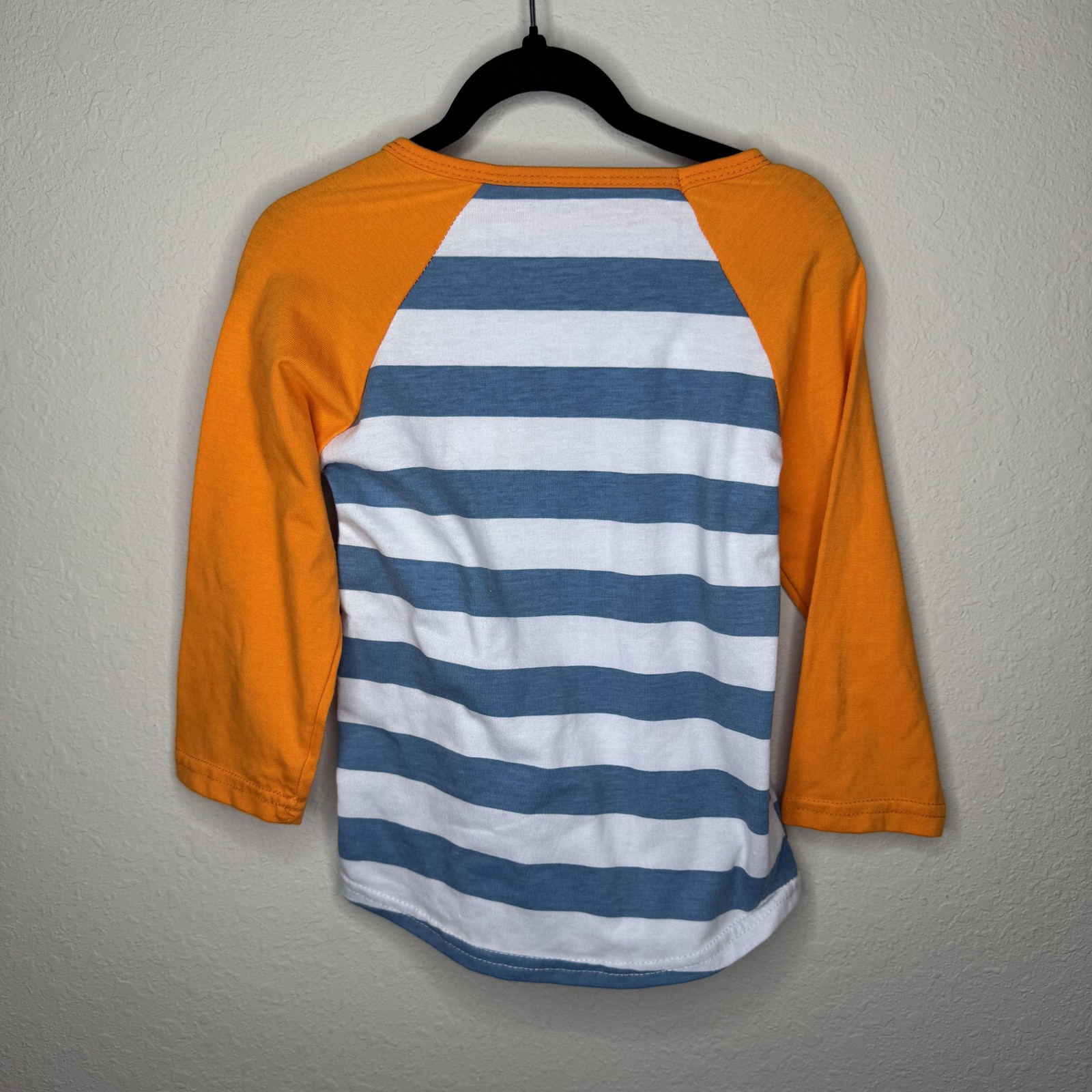 Pumpkin Shirt Toddler 2T Orange Blue Striped 3/4 Raglan Fall Halloween Applique